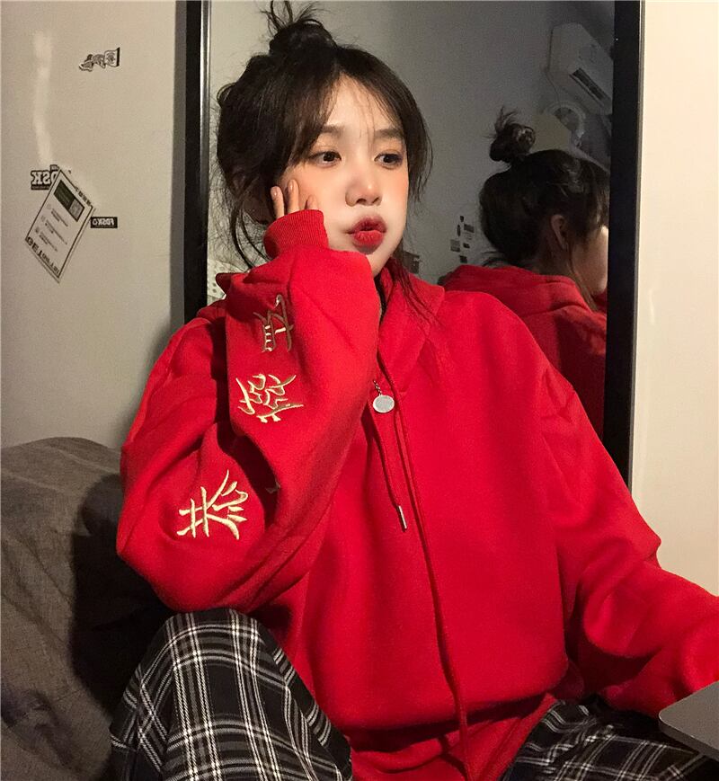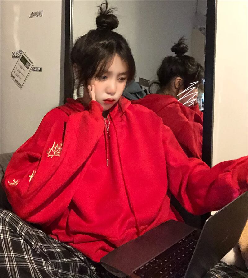 厚みセーター レディース秋物ウィンター韓国ファッショントレンドレッドフードルーズジャケット オータム 冬物 スタイル デーモン49199444891