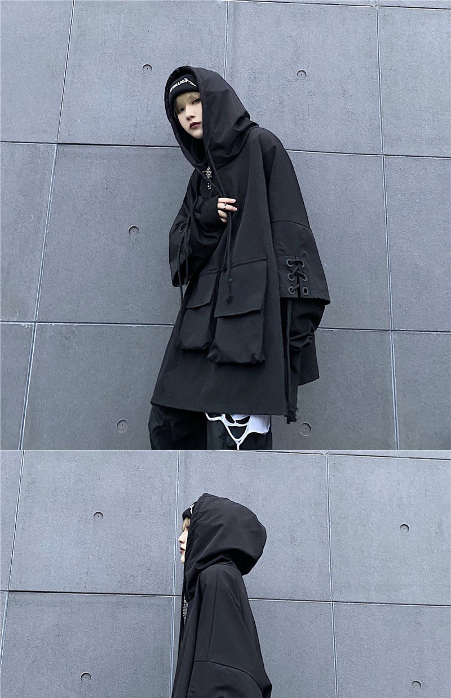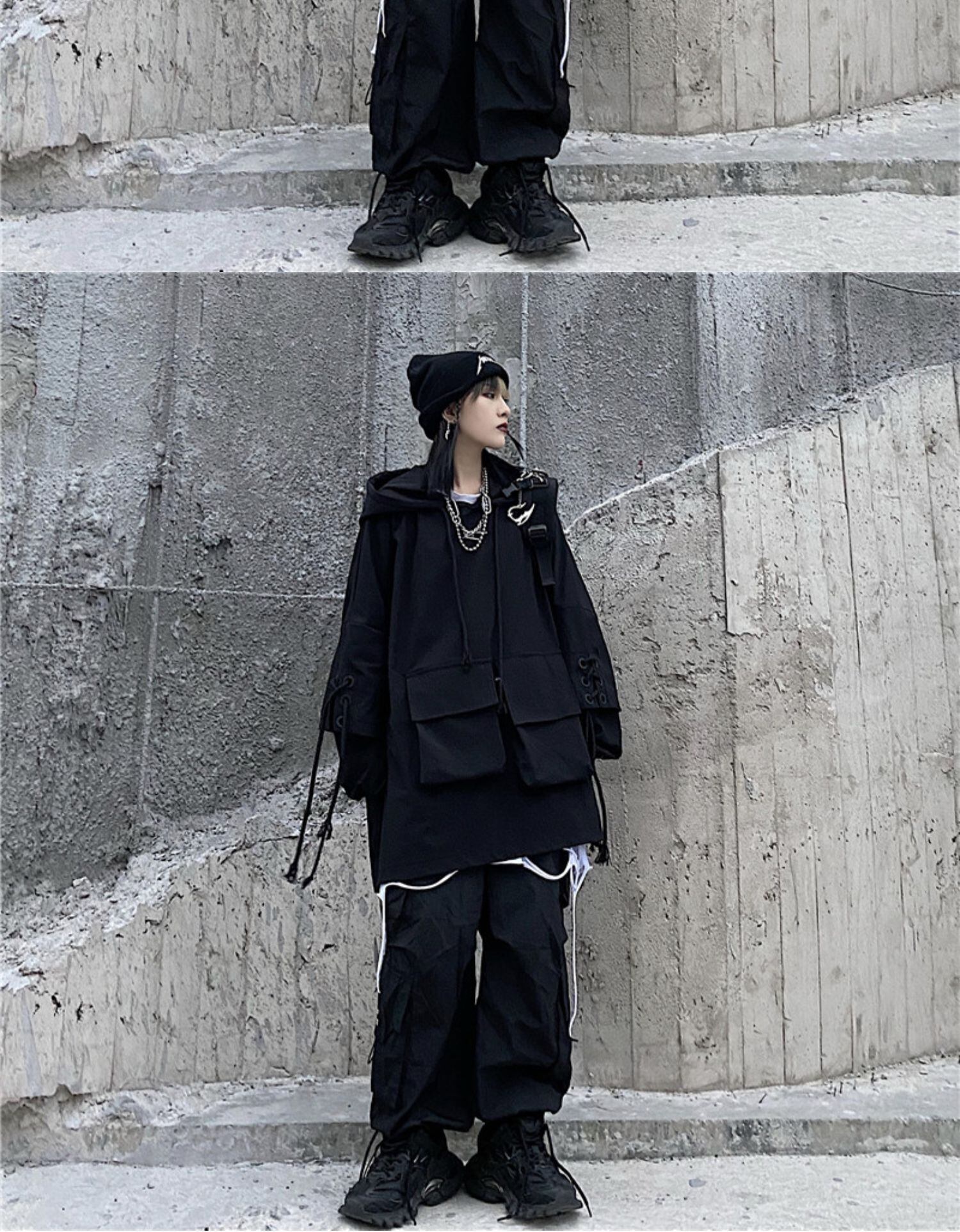 ジャケット レディース秋物ウィンター韓国ファッショントレンドルーズブラックプルオーバー フードセーター ストリート オータム 冬物 ボーイズ スタイル デーモン69610818040