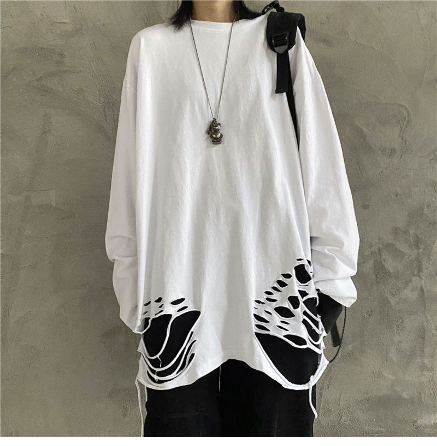 ゆったりシャツ 秋物ウィンタートレンドホワイトトップス ルーズTシャツ ロング オータム 冬物 ボーイズ 長袖 デーモン59485252697