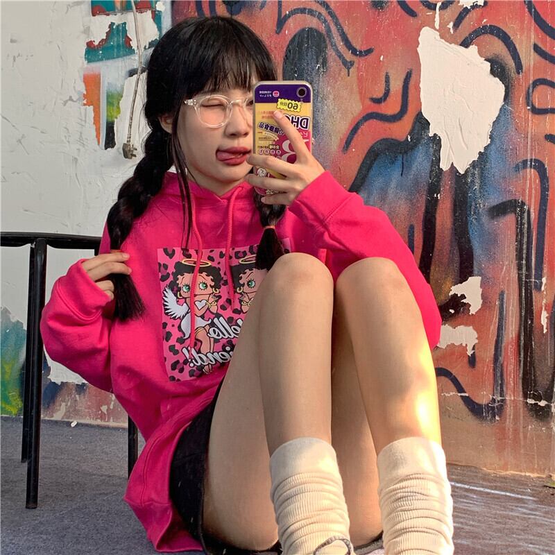 セーター レディース秋物ウィンター韓国ファッショントレンドルーズレッドフードジャケット オータム 冬物 ボーイズ スタイル デーモン34809935141