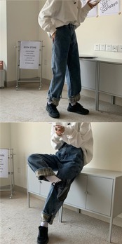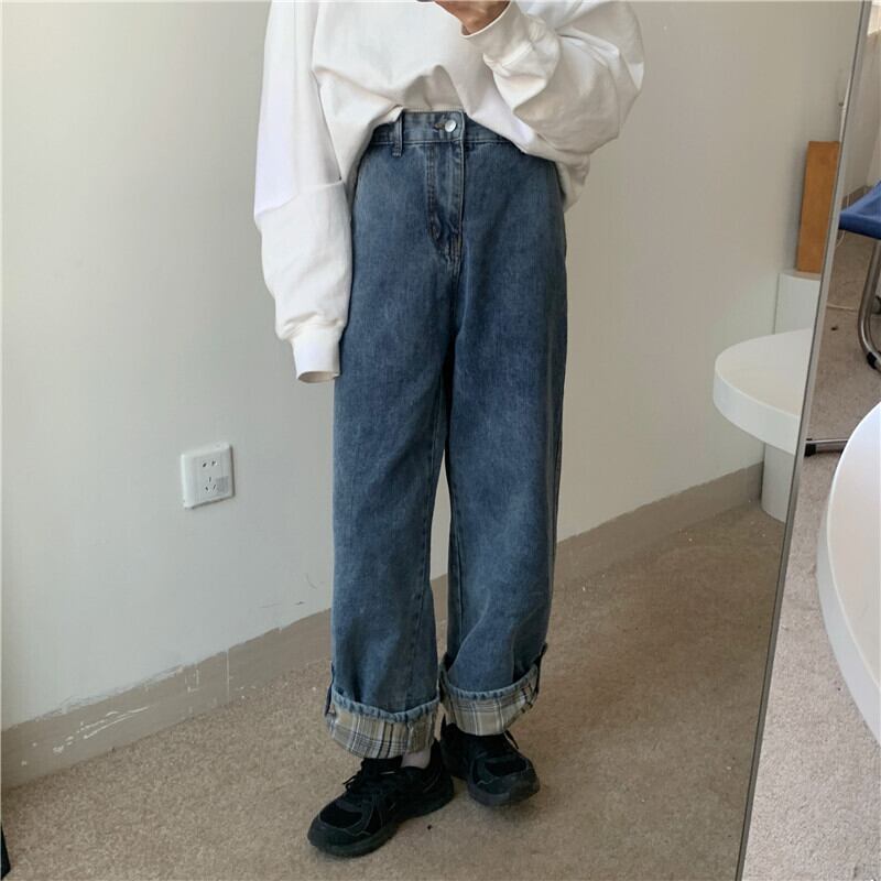 秋物ウィンターパンツ レディース韓国ファッショントレンドジーンズ ルーズハイウェストウェスト オータム 冬物 ステッチ ボーイズ スタイル ウエスト デーモン27863622844