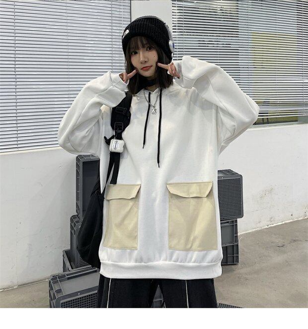 セーター 秋物ウィンター韓国ファッショントレンドポケット厚みフードジャケット レディース 原宿 オータム 冬物 スタイル デーモン2215394262