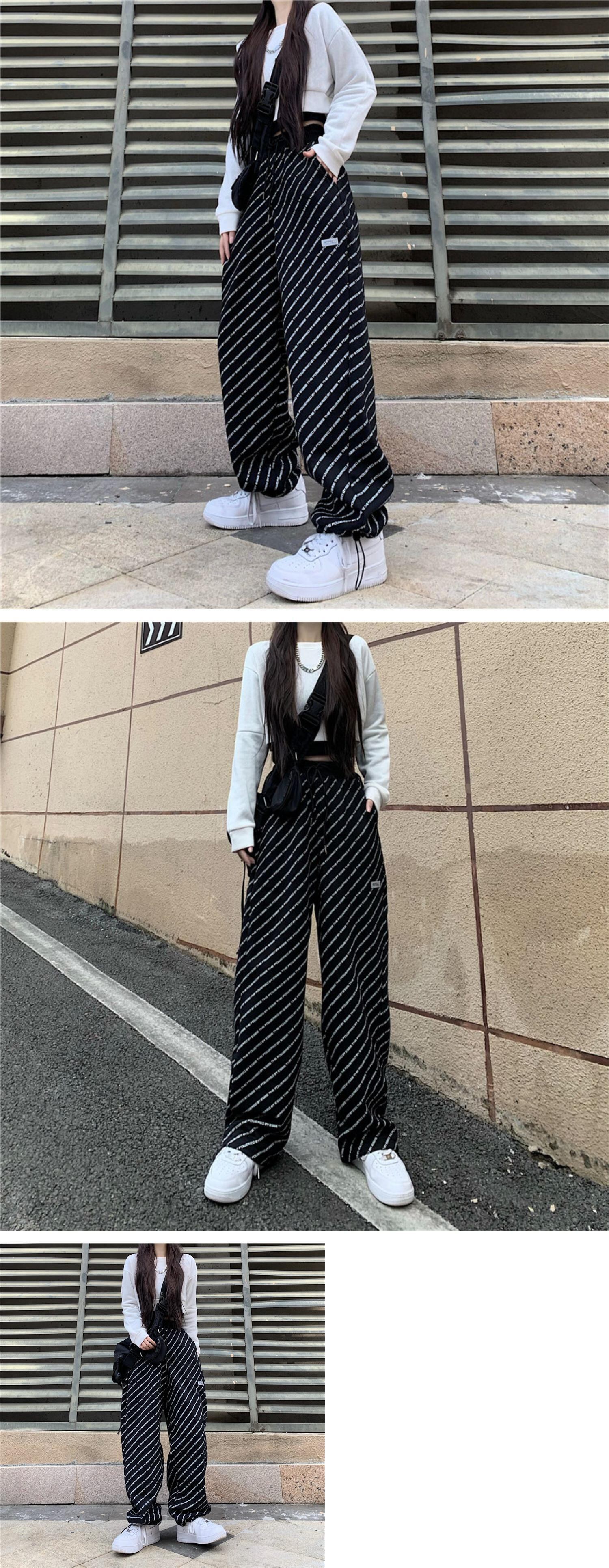 秋物ウィンターカジュアルパンツ レディース韓国ファッショントレンドストライプルーズワイドレッグ オータム 冬物 ワイドパンツ ボーイズ スタイル デーモン20751484053