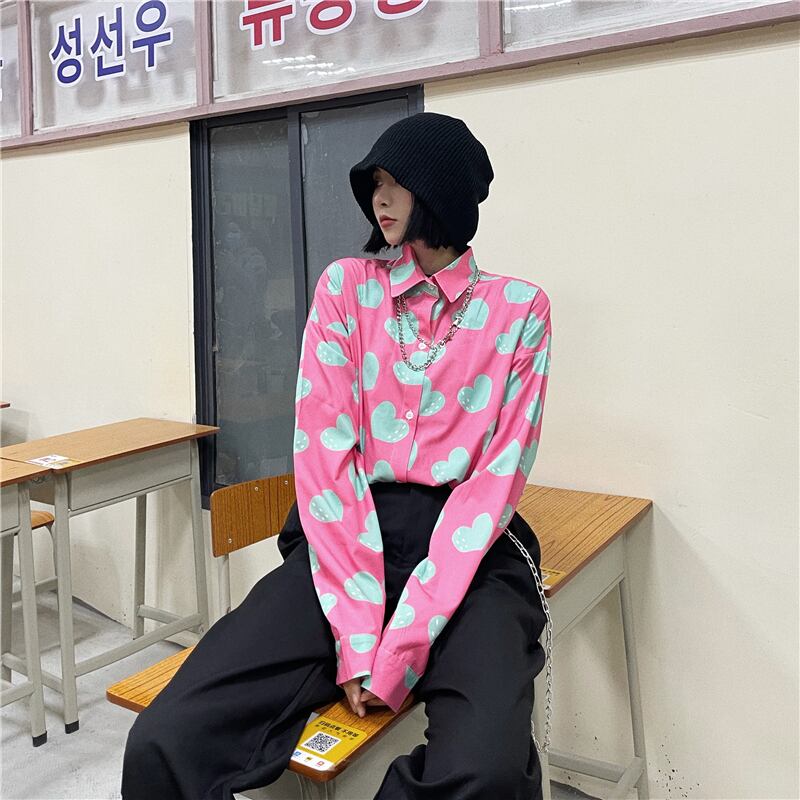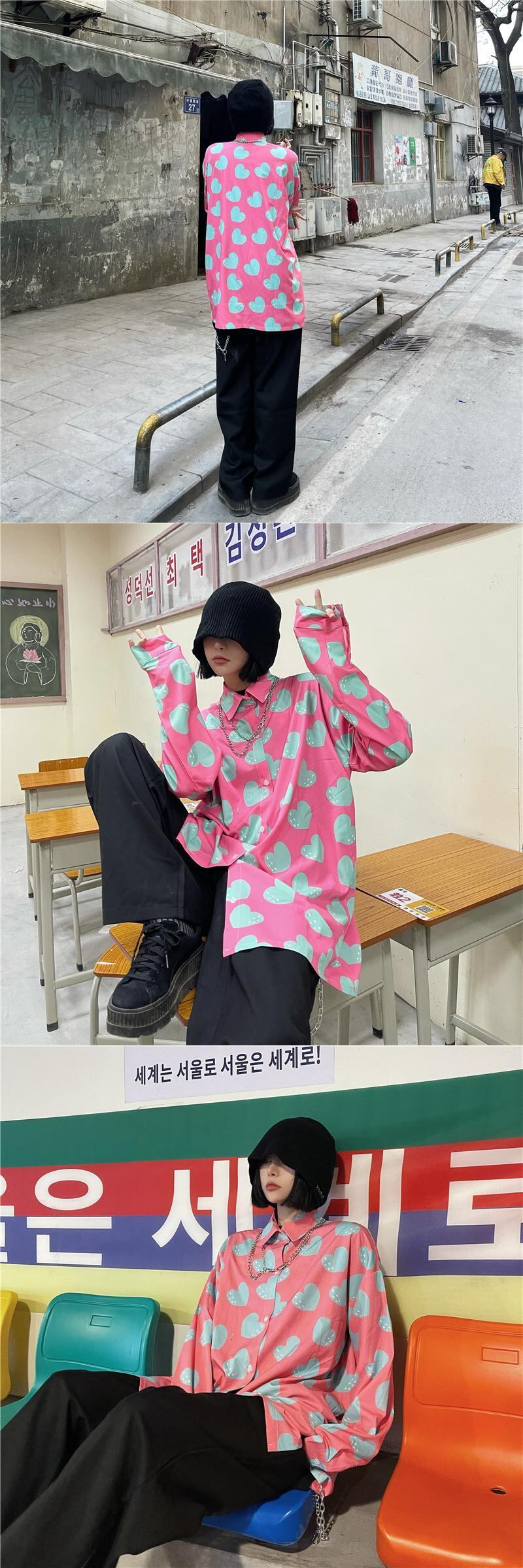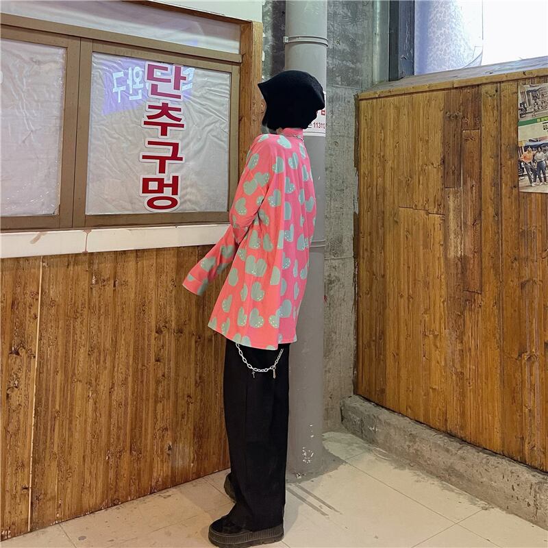 シャツ スプリングブルーカラールーズオーバーサイズトップス ピンク 春物 CHIL85134957204