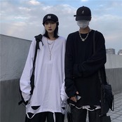 スプリング韓国ファッションルーズソリッド カラーロングゆったりシャツ 長袖スリーブTシャツメンズレディース ストリート 春物 ソリッドカラー スタイル CHIL75471129642