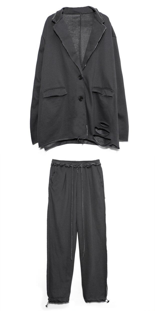 色:ブラックトップ,ブラックモップパンツ,グレートップ,灰色のモップパンツ