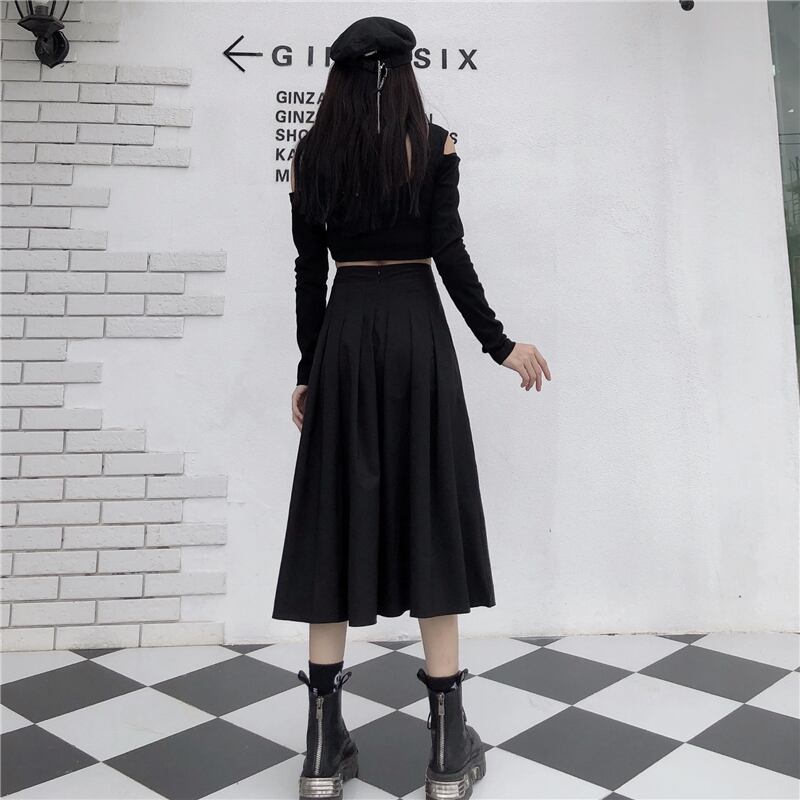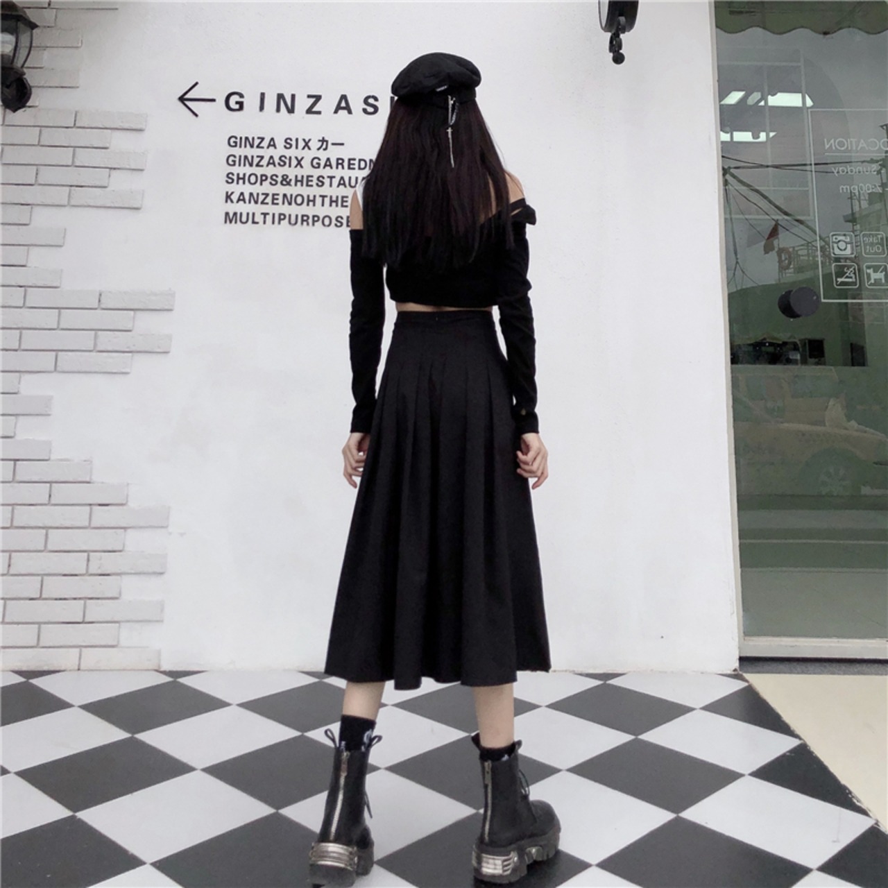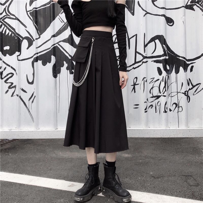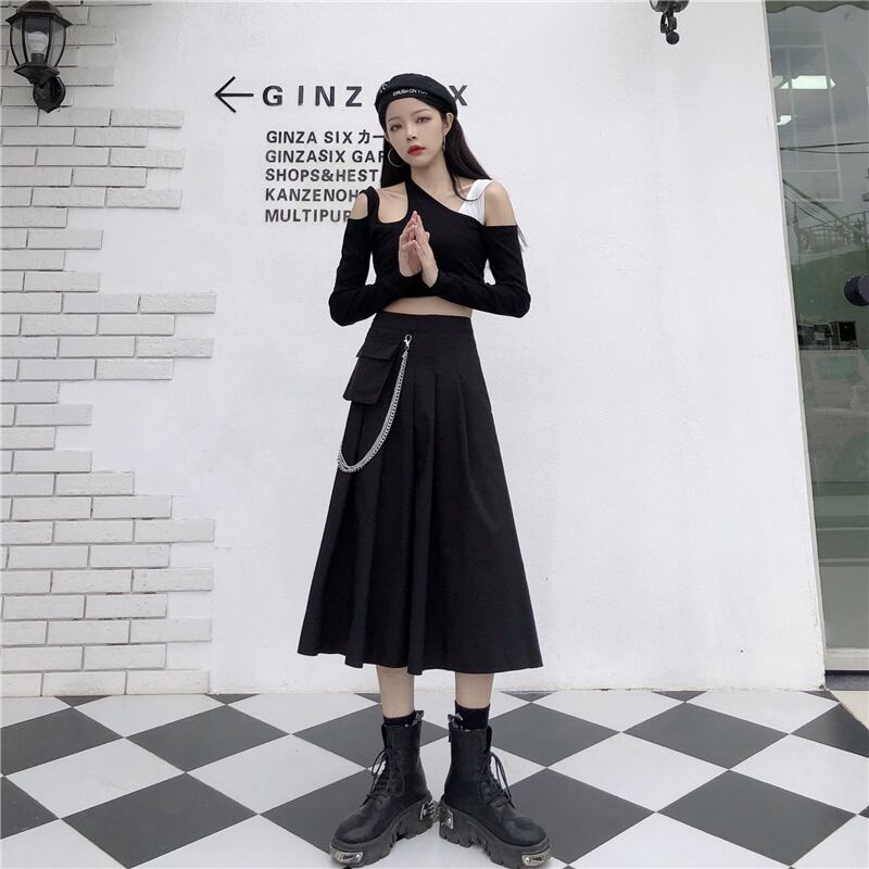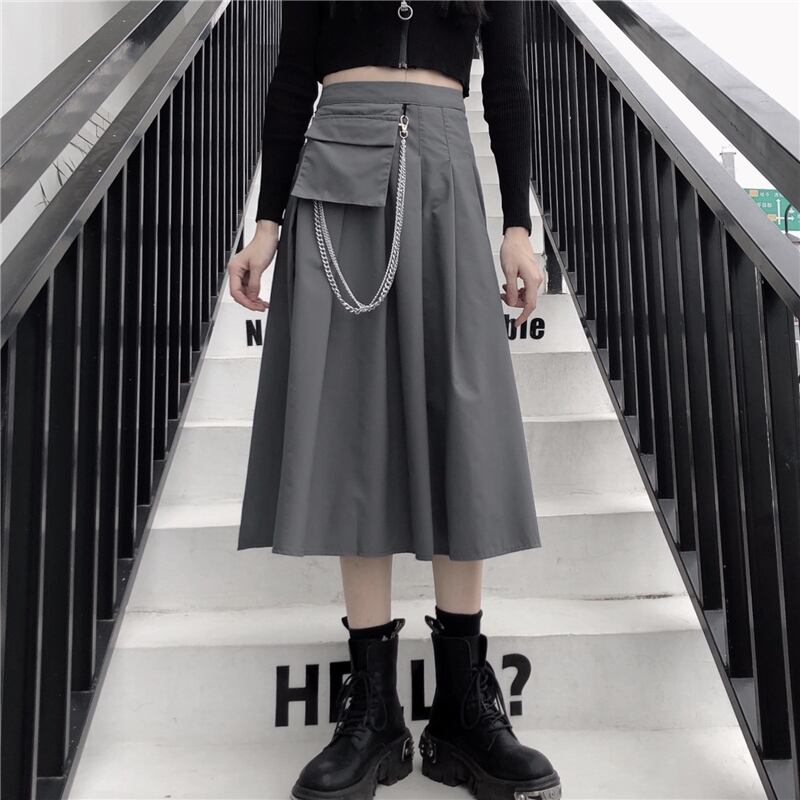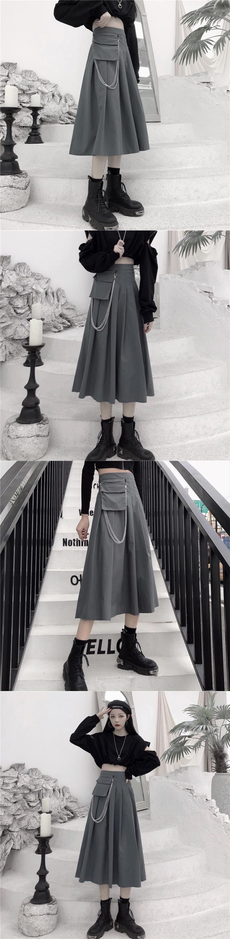 スカート レディース韓国ファッションプリーツトレンドダークルーズAラインチェーン ミドル丈 CHIL47184715802
