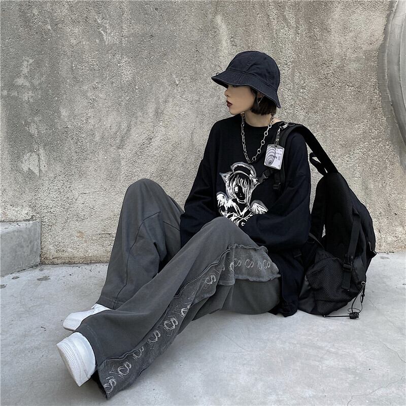 カジュアルパンツ 秋物ウィンター韓国ファッショントレンドルーズグレー オータム 冬物 ステッチ ボーイズ デーモン49390732884