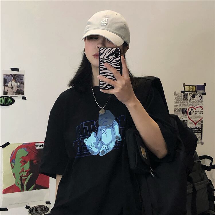 スプリング夏服レディース韓国ファッショントレンドスタンダードプリントルーズTシャツゆったりメンズトップス レトロ 春物 夏物 CHIL70657597905