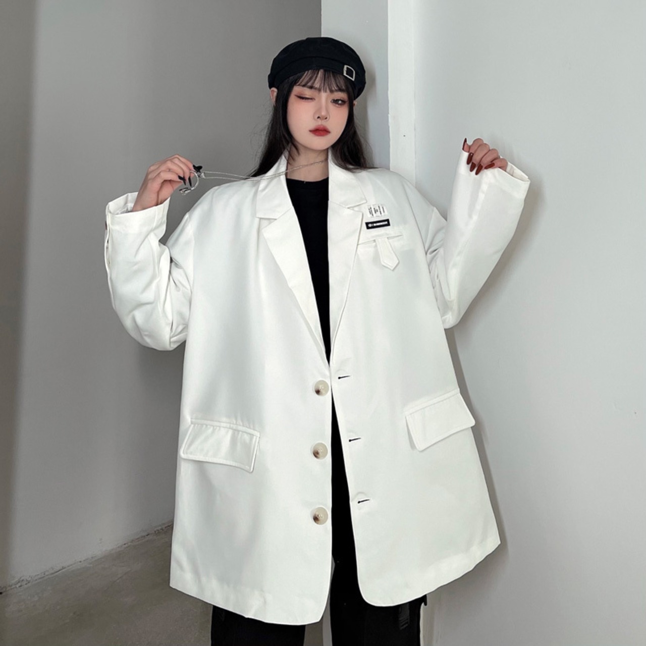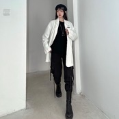 レディーススプリング韓国ファッショントレンドホワイトルーズカジュアルジャケット ストリート 春物 スタイル デーモン21208711714