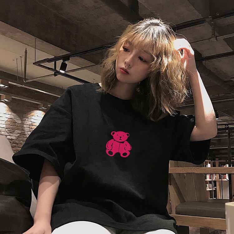 スプリング夏服韓国ファッショントレンドダークラインレッドプリント柄ルーズトップス Tシャツ 春物 夏物 スタイル CHIL47505600842
