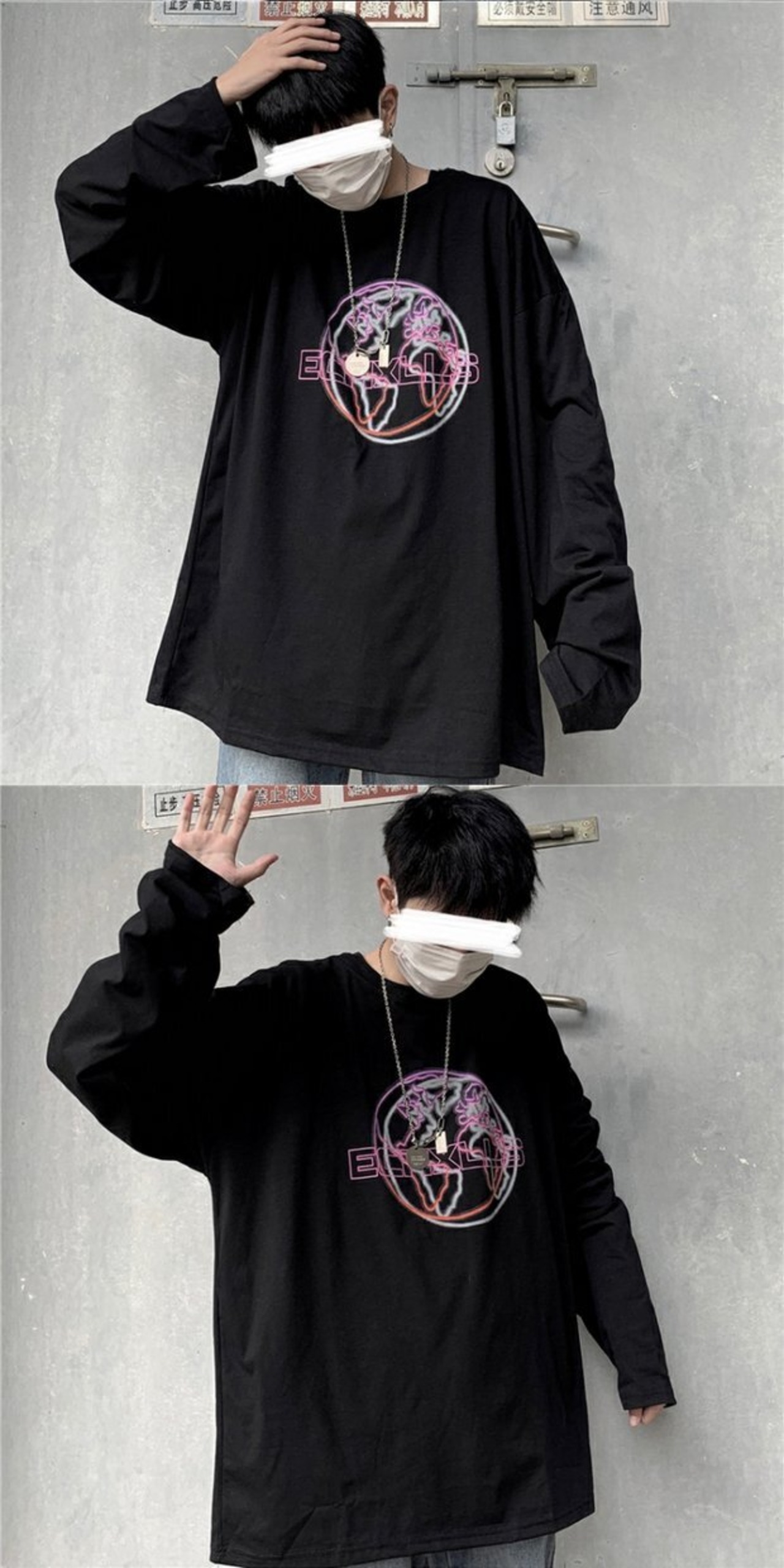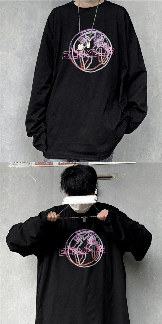 ゆったりシャツ トップス レディーススプリング韓国ファッショントレンドスタンダードプリントルーズTシャツ ロング レトロ 春物 スタイル 長袖 デーモン64640481259