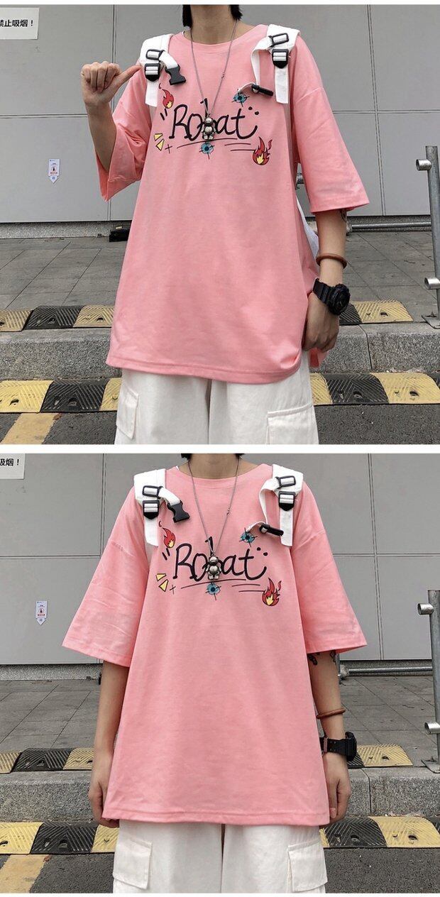 ラウンドネックゆったりシャツ レディーススプリング韓国ファッショントレンドプリントルーズTシャツ 春物 Oネック スタイル デーモン26336636596