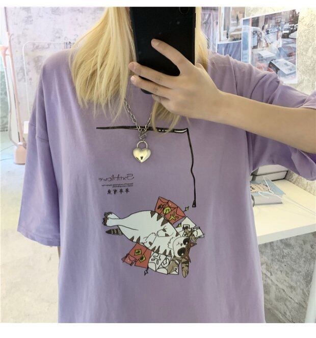 スプリングTシャツレディース韓国ファッショントレンドプリントホワイトルーズトップス 大人ガーリー スウィート キュート カジュアル 春物 スタイル デーモン4974843461