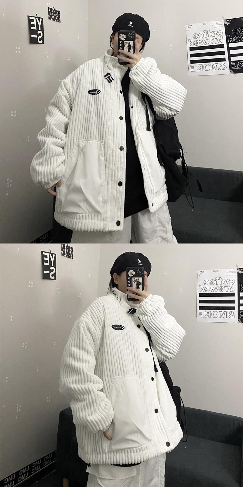 コーデュロイジャケット レディース韓国ファッショントレンドスタイルホワイト秋物ウィンター コットン オータム 冬物 デーモン20709920464