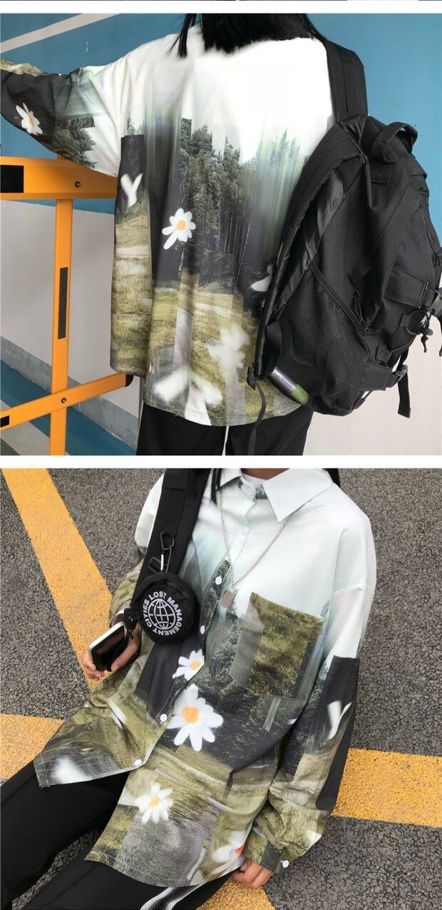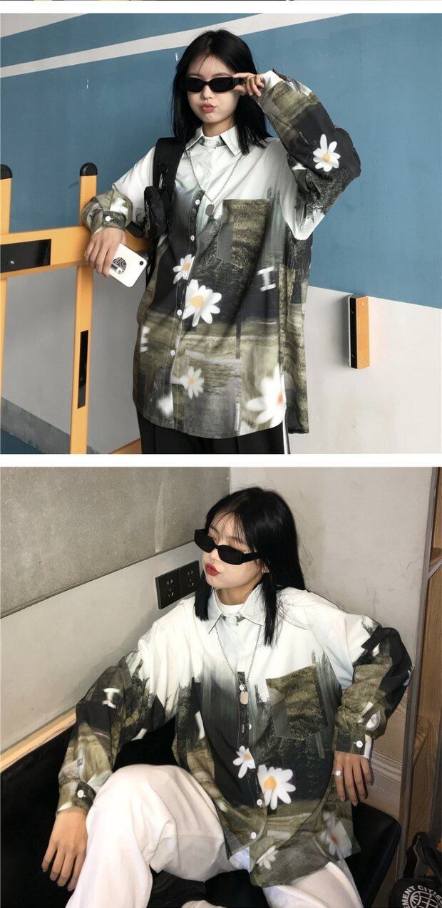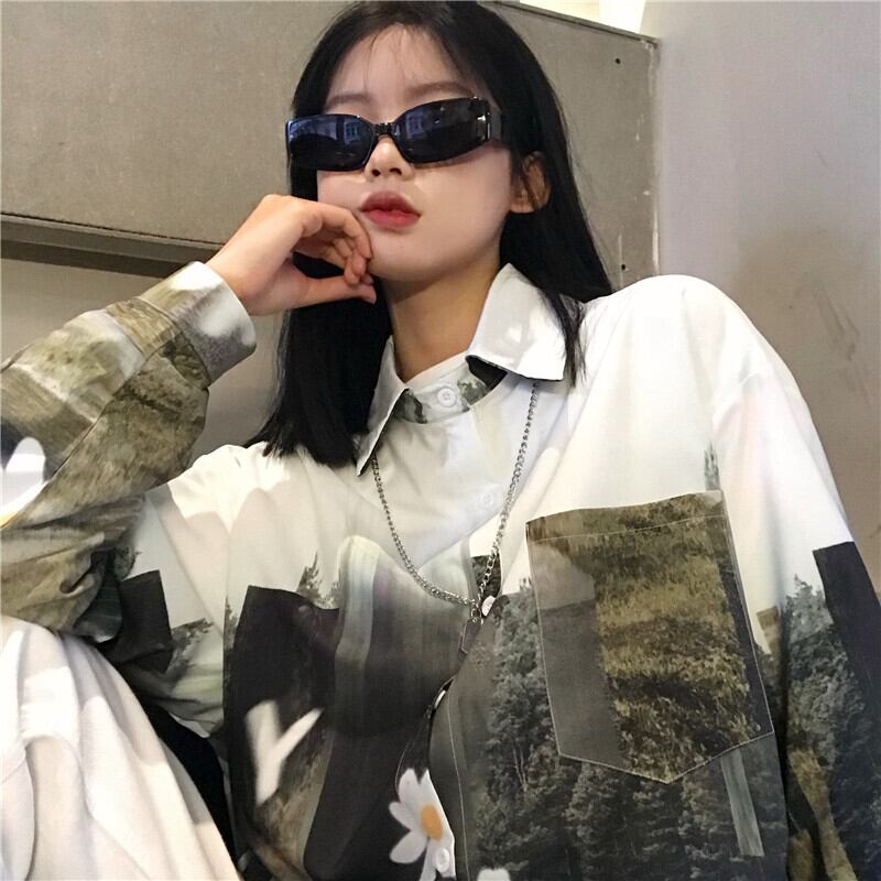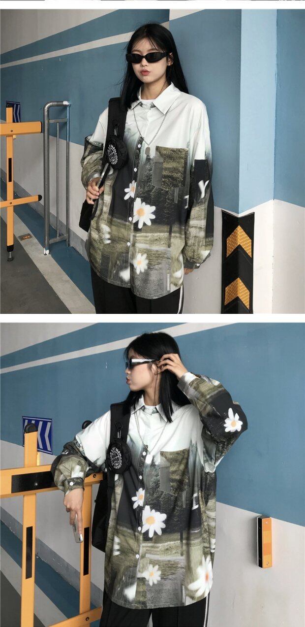 シャツ レディーススプリング韓国ファッショントレンドスタイルプリントルーズカジュアルジャケット ロング 原宿 春物 長袖 デーモン52976906773