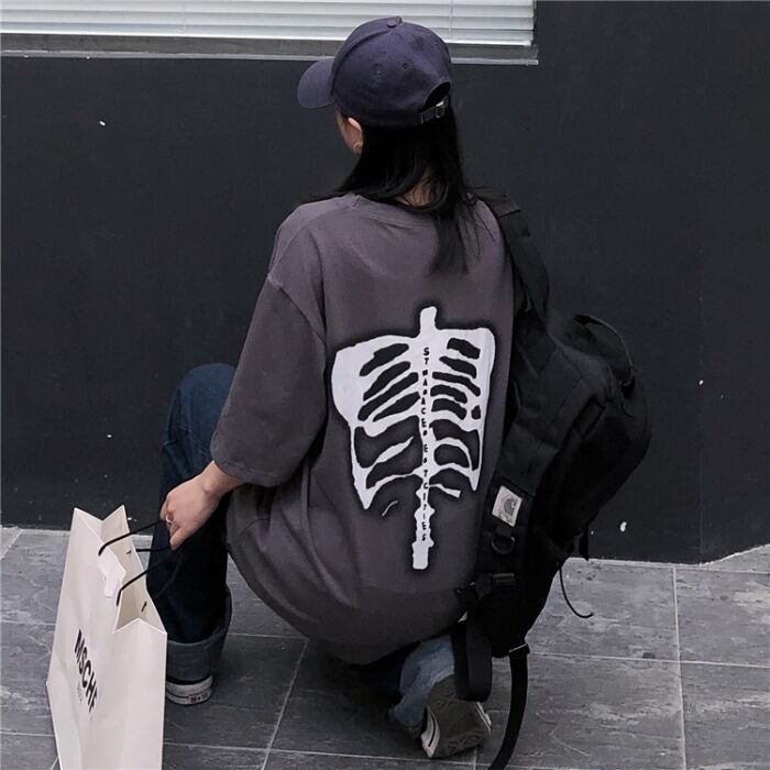 レディーススプリング夏服韓国ファッショントレンドダークプリント柄ルーズゆったりTシャツメンズトップス 春物 夏物 CHIL59225835451