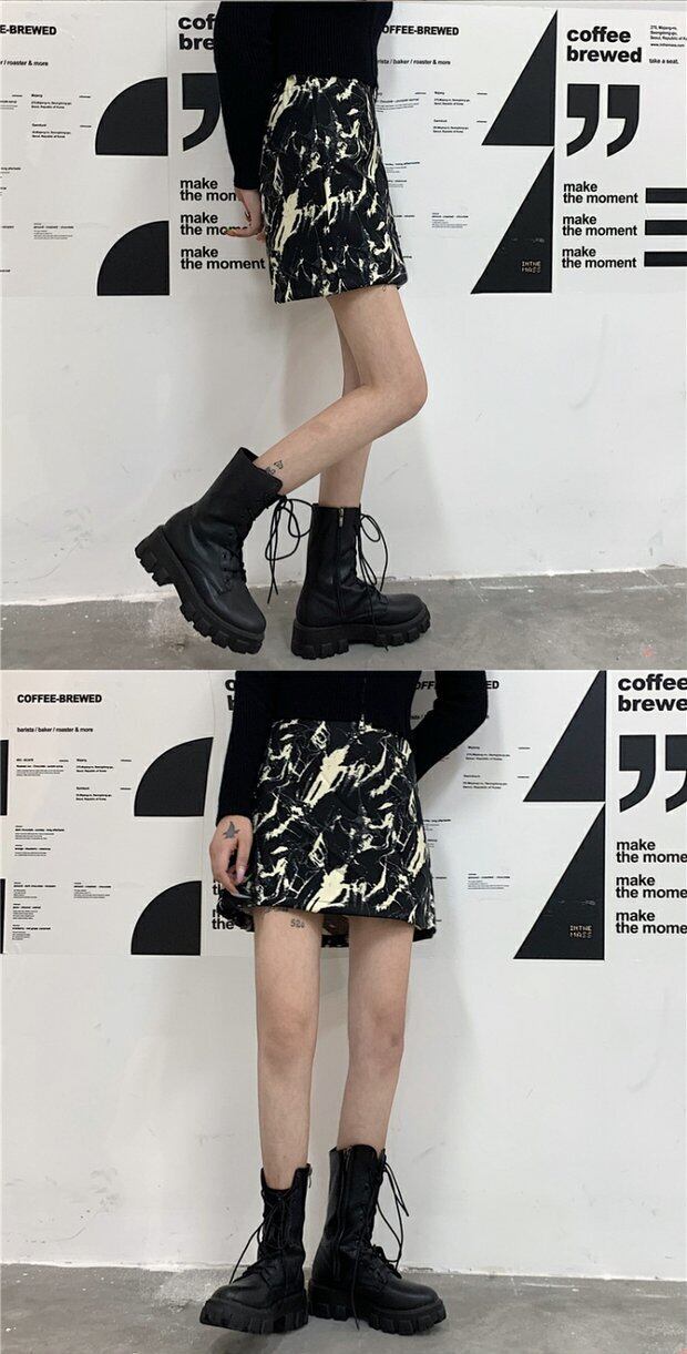 スプリングスカート レディース韓国ファッショントレンドダークAラインショートハイウェストウェスト 春物 スタイル ウエスト ミドル丈 デーモン40129796673