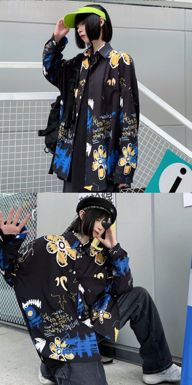 シャツ ジャケット レディーススプリング韓国ファッショントレンドダークプリントルーズ ロング 春物 ボーイズ スタイル 長袖 デーモン19400901818