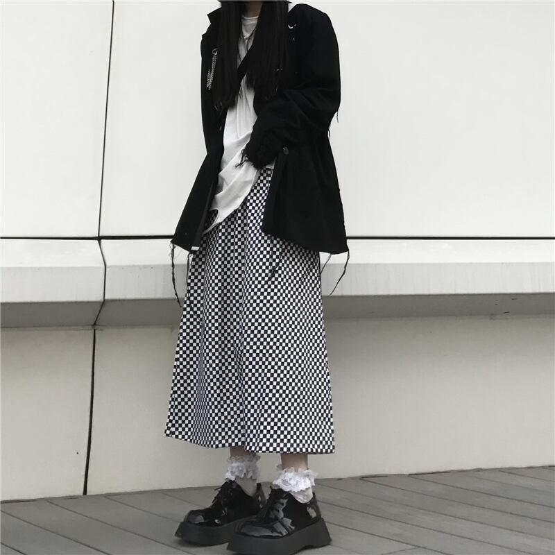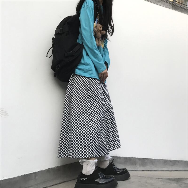 スカート レディーススプリング韓国ファッショントレンドハイウェストウェスト薄手Aライン格子柄 春物 スタイル ウエスト ミドル丈 デーモン15276321905
