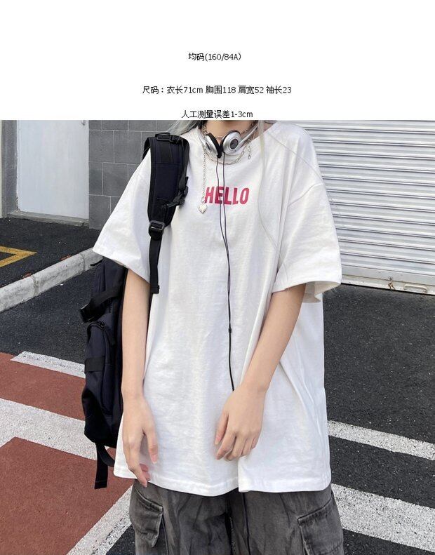 Tシャツレディーススプリング韓国ファッショントレンドプリントホワイトルーズトップス 春物 スタイル デーモン40748194485