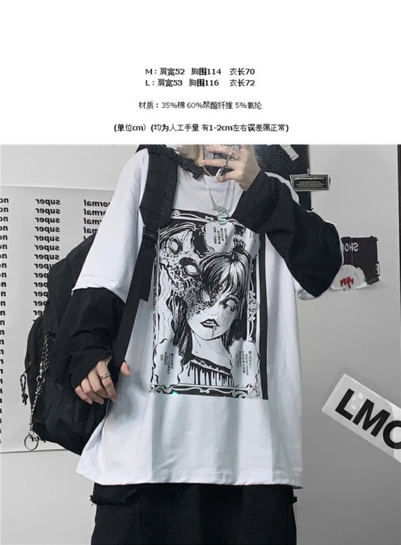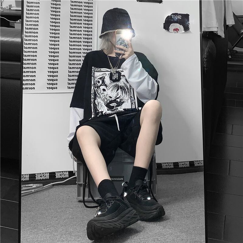 トップス レディーススプリング韓国ファッショントレンドプリントルーズTシャツシャツ ゆったり ロング 春物 スタイル 長袖 デーモン35735732027
