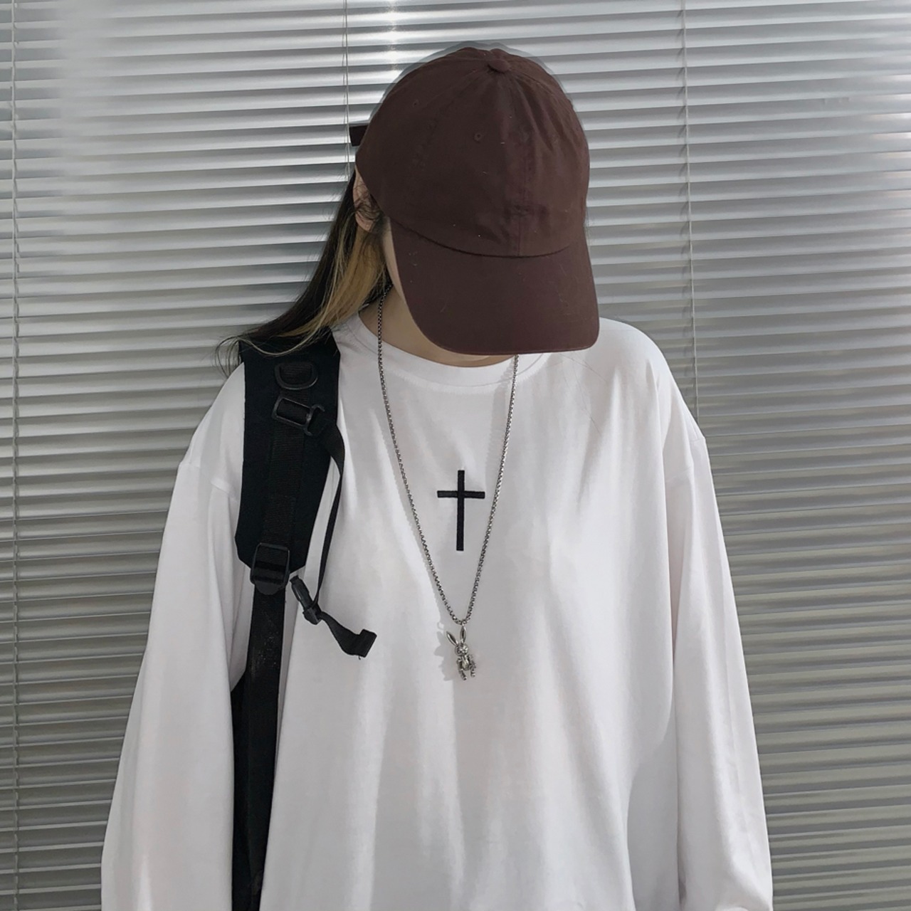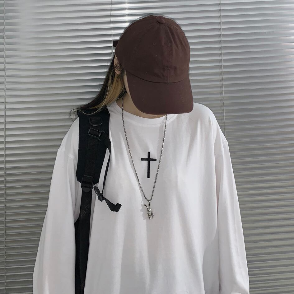 カラーTシャツシャツ レディーススプリング韓国ファッショントレンドクロス刺繍ゆったり ロング 春物 スタイル 長袖 デーモン42677268657