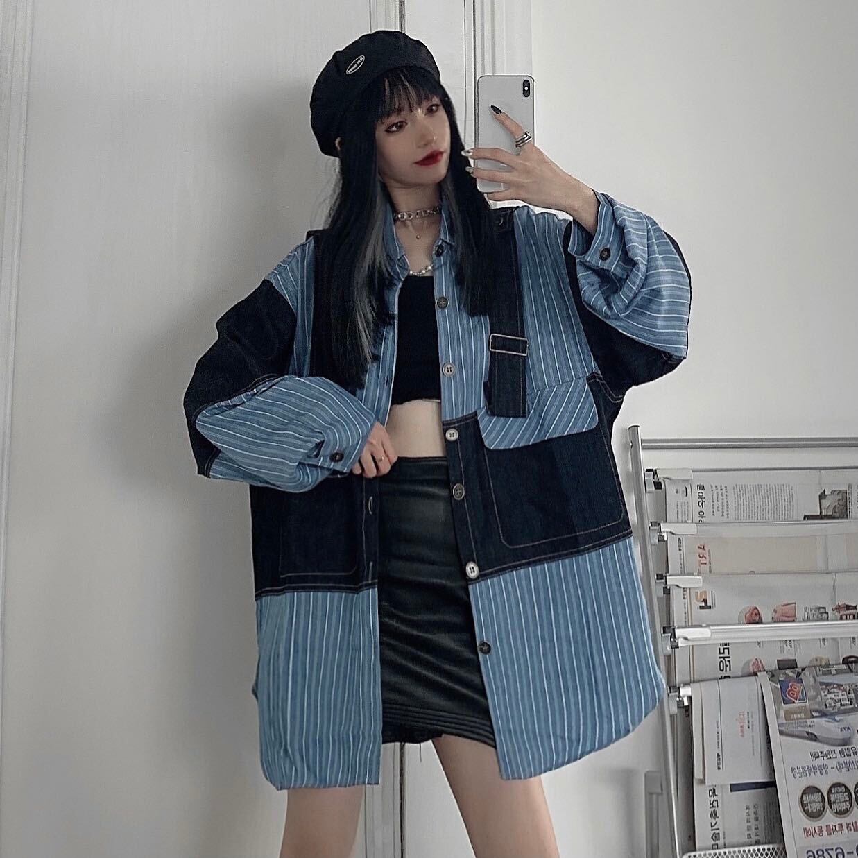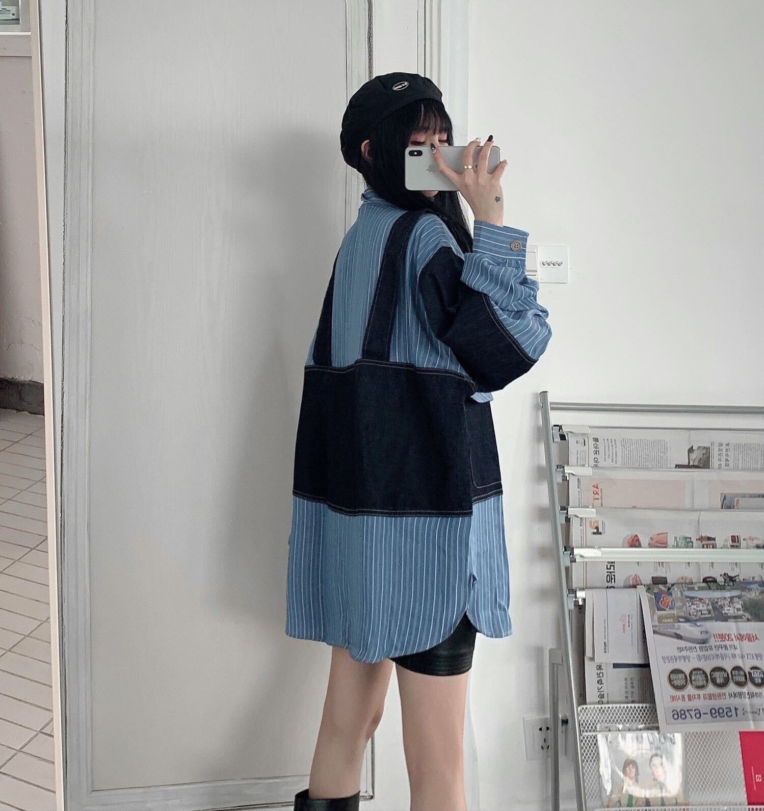 ジャケット スプリング韓国ファッショントレンドシャツ ルーズカジュアル ロング 春物 ステッチ 長袖 デーモン78597994097