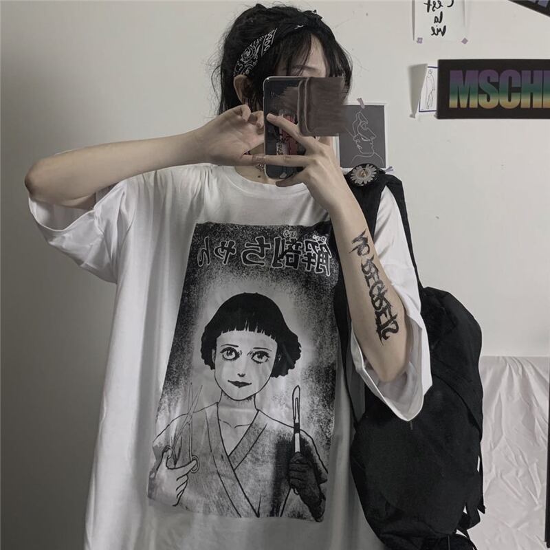 ゆったりシャツ レディーススプリング韓国ファッショントレンドダークプリントTシャツ 春物 スタイル デーモン93052090331