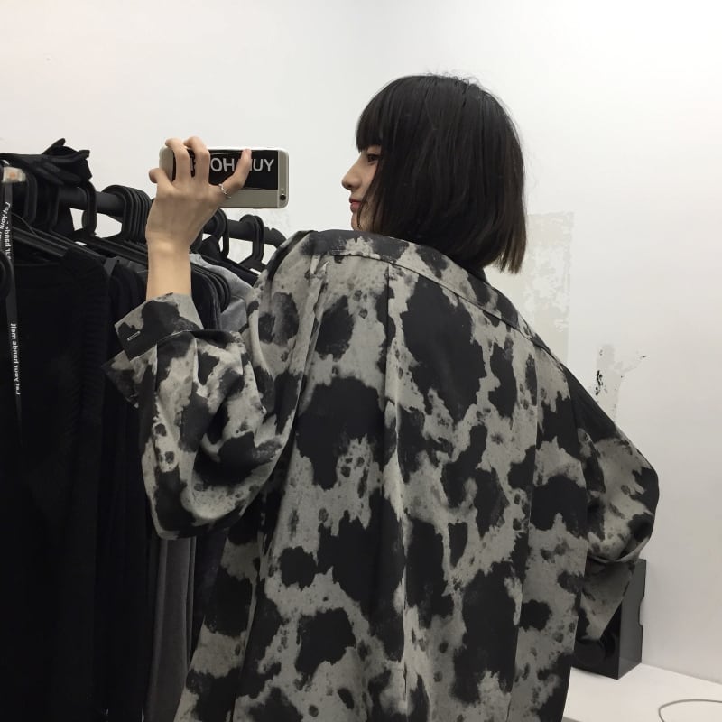 スプリングシャツ 韓国ファッションレオパードプリント柄ルーズジャケット ロング 春物 ボーイズ スタイル 長袖 デーモン47253224416