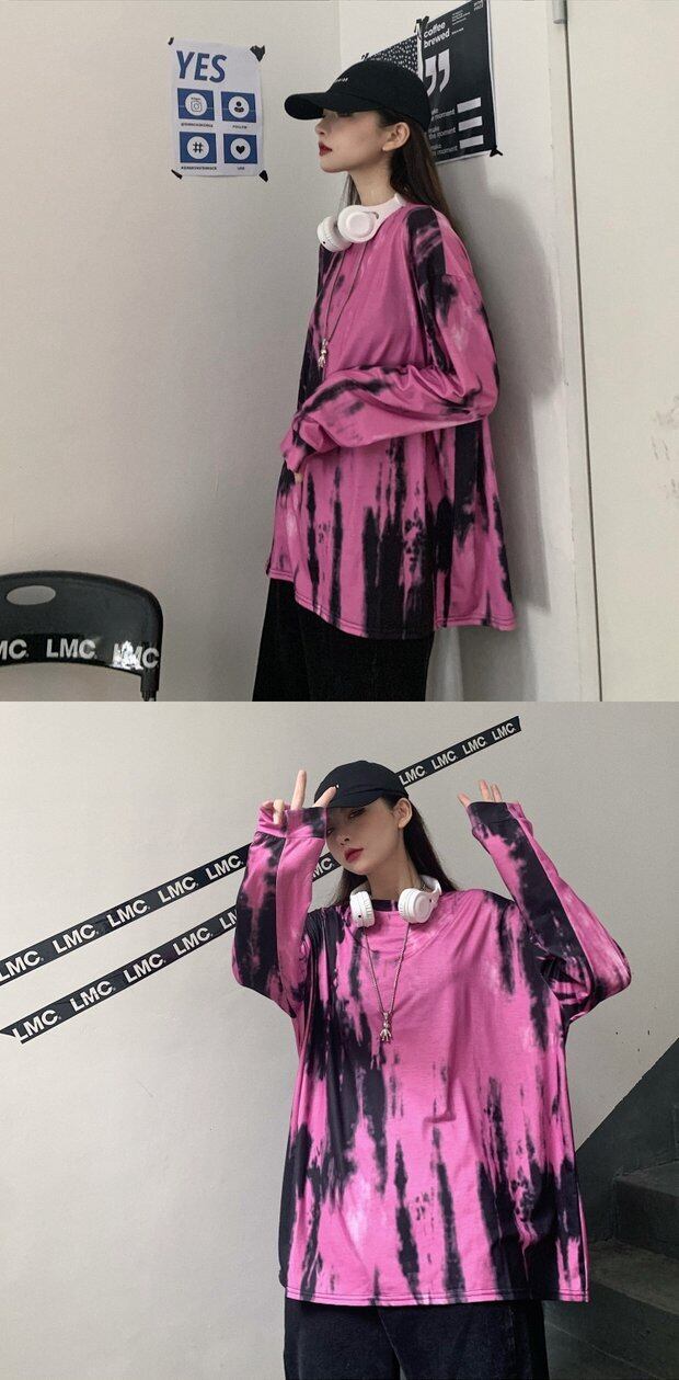 スプリング韓国ファッショントレンドラウンドネックTシャツシャツ レッドルーズゆったり ロング 春物 Oネック 長袖 デーモン43034859439
