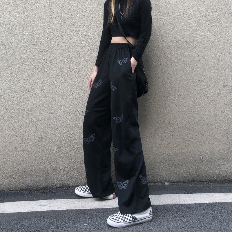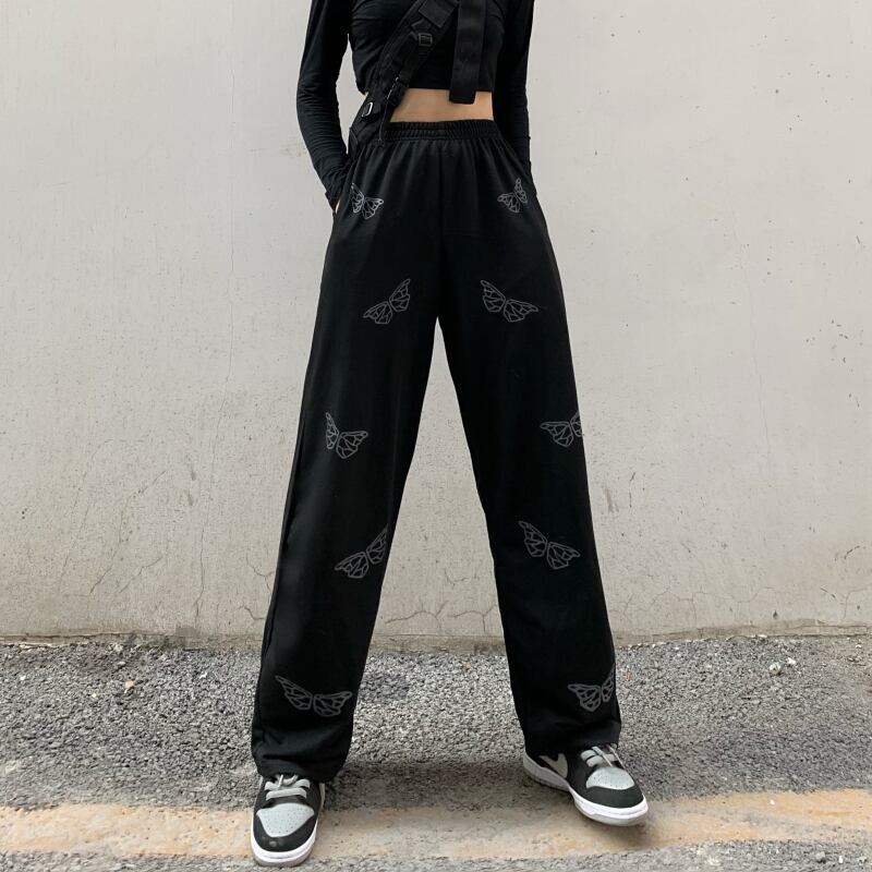 レディーススプリング韓国ファッショントレンドダークButterflyデザイン 薄手パンツ ルーズ 春物 スタイル デーモン66201027750