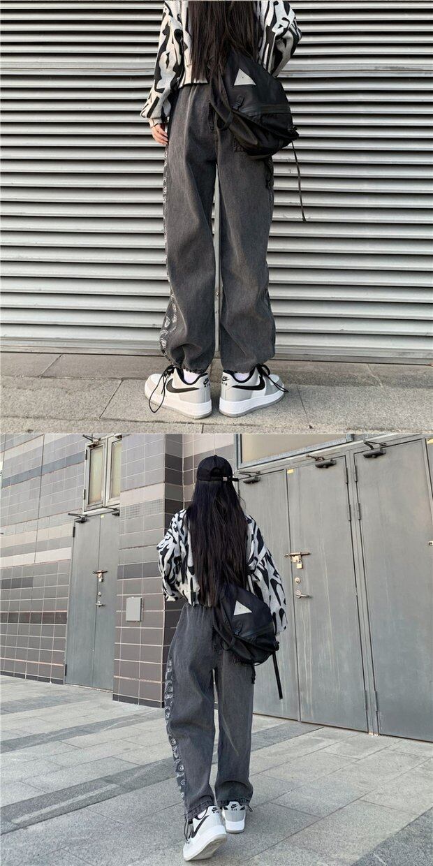 ギャザージーンズ レディーススプリング韓国ファッショントレンドFlowerデザイン ワイドレッグパンツ 春物 ワイドパンツ フラワーデザイン ステッチ スタイル デーモン14056509771