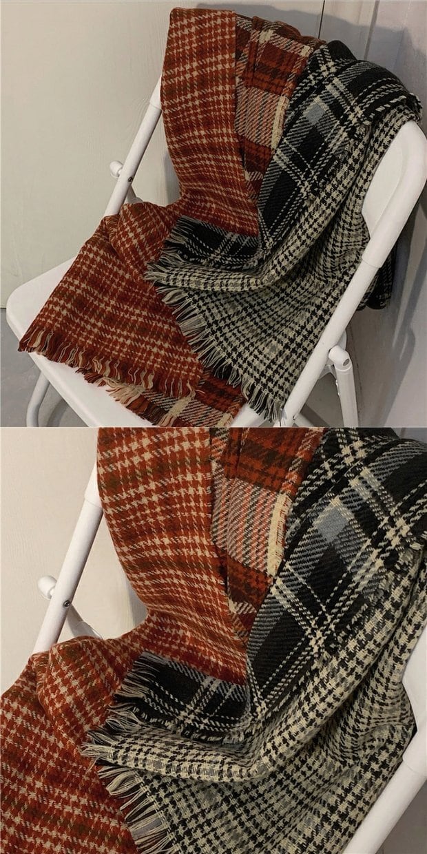 スカーフ レディース韓国ファッショントレンドスタンダード格子柄ニット レトロ スタイル デーモン54901796924