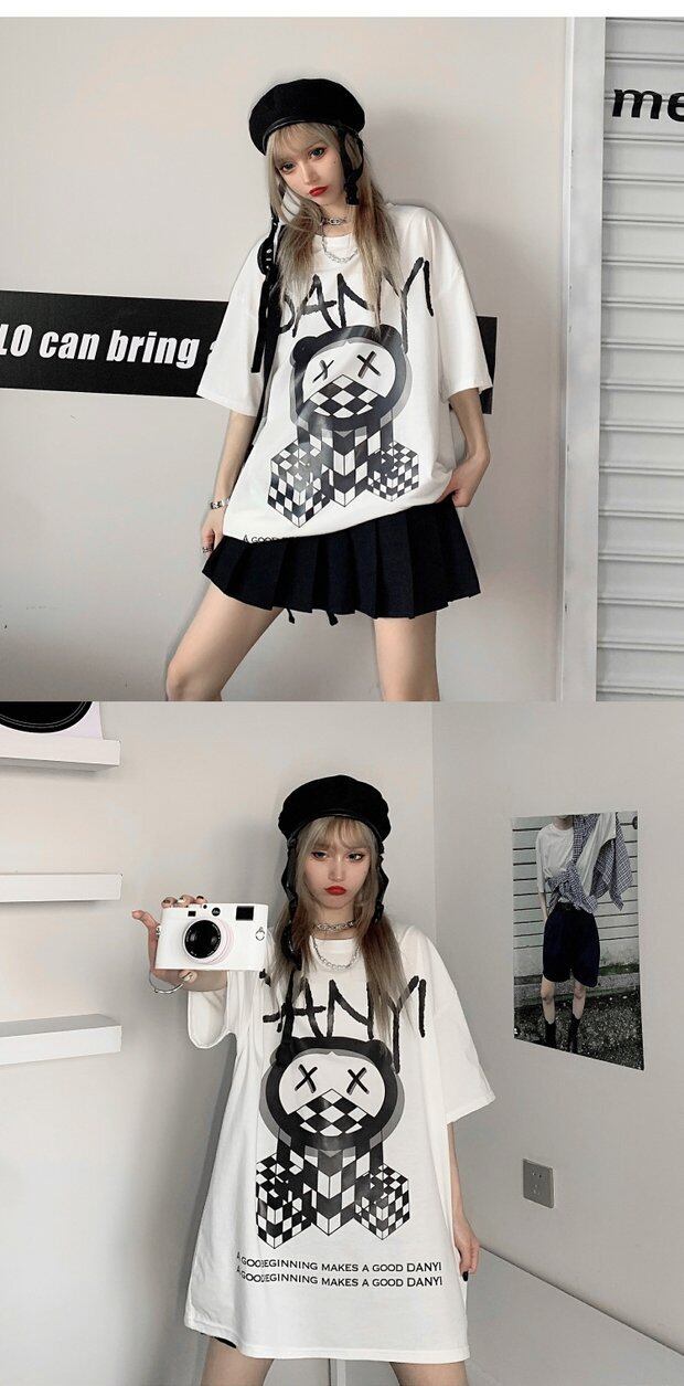 スタイルジャケット レディーススプリング韓国ファッショントレンドプリント柄ルーズホワイトTシャツ 原宿 春物 ボーイズ デーモン58498385497