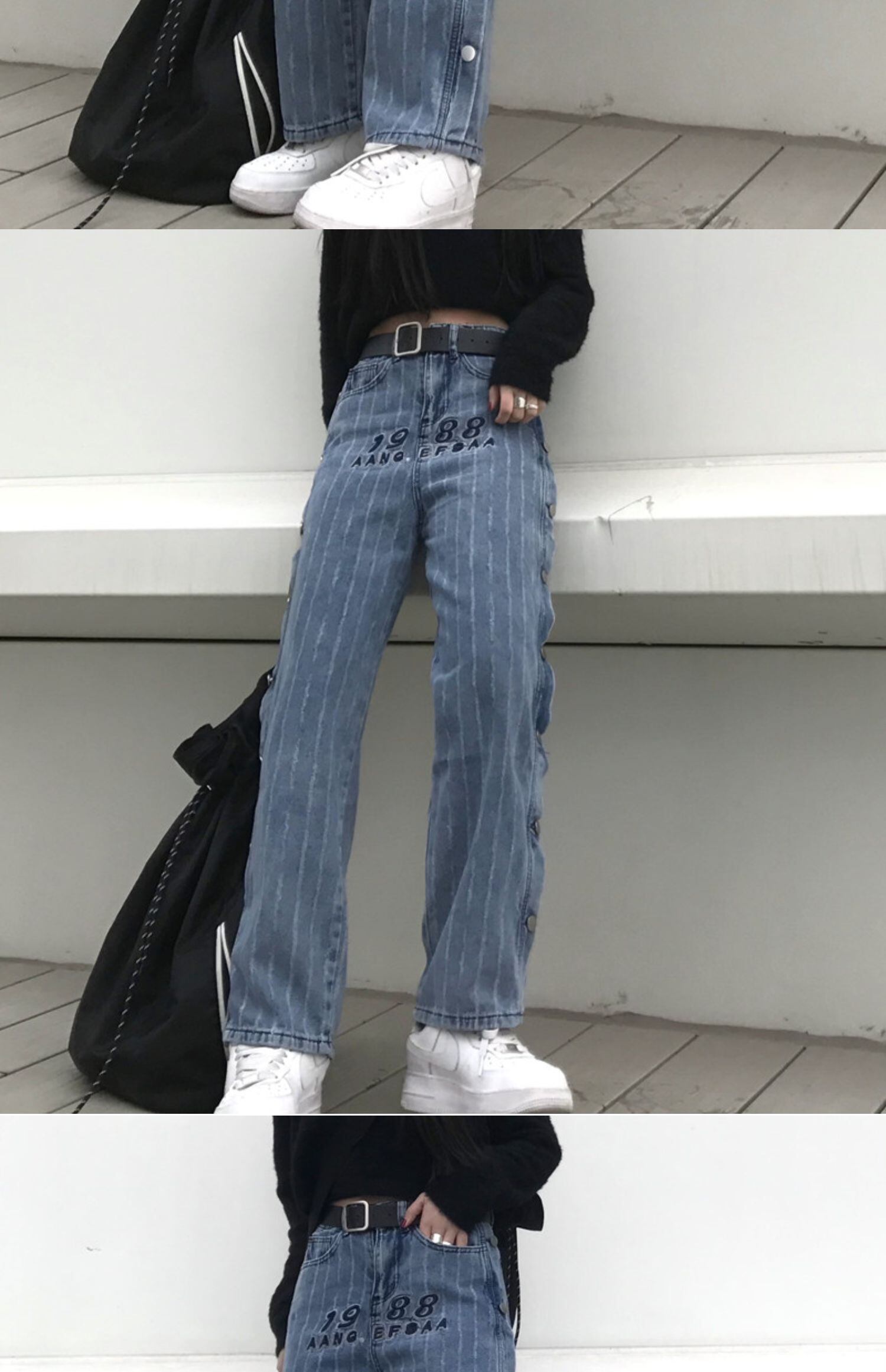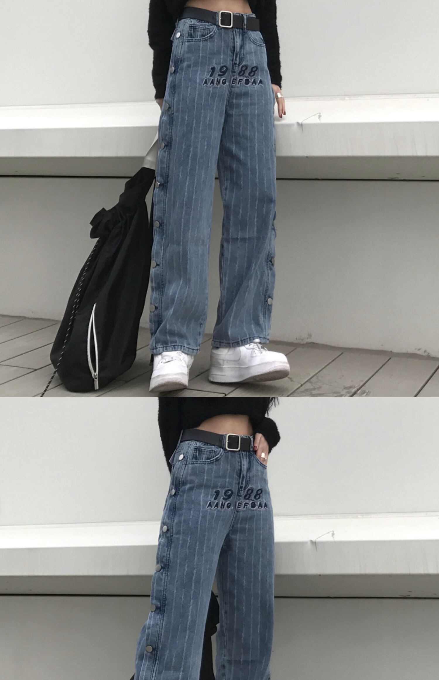 秋物ウィンタージーンズ レディース韓国ファッショントレンドワイドレッグパンツ ハイウェストウェストカジュアルルーズ オータム 冬物 ストライプ ワイドパンツ スタイル ウエスト デーモン13435092611