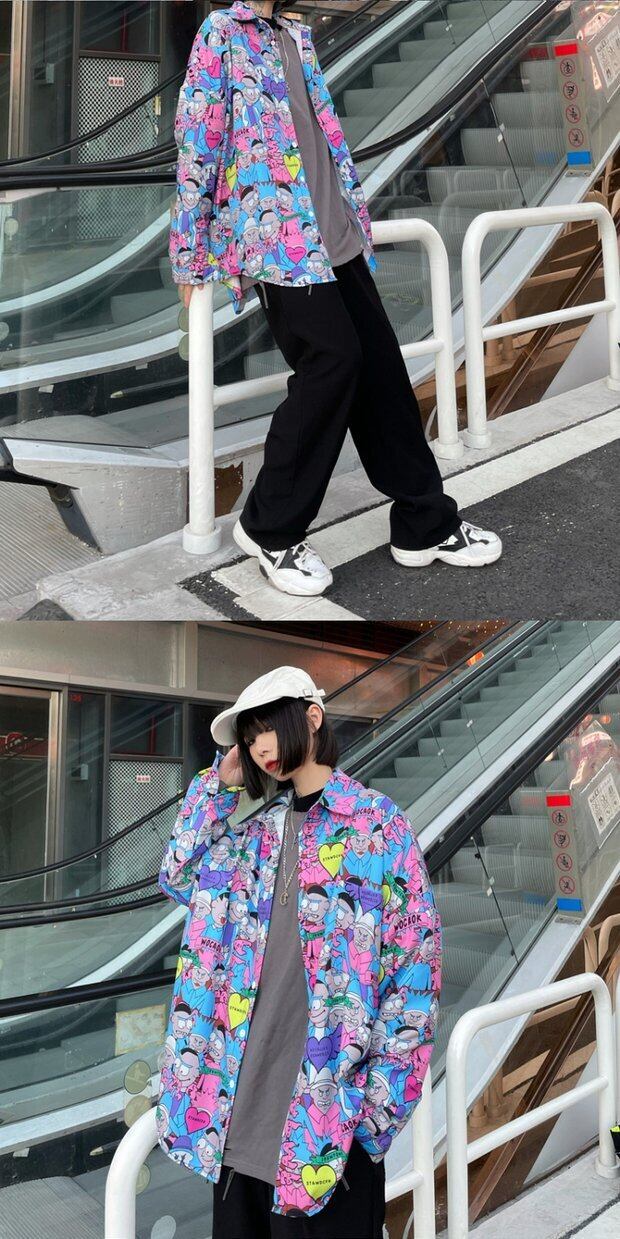 シャツ 秋物ウィンター韓国ファッションスタイルスタンダードプリントルーズ長袖スリーブジャケット ロング レトロ 原宿 オータム 冬物 ボーイズ デーモン95280127572