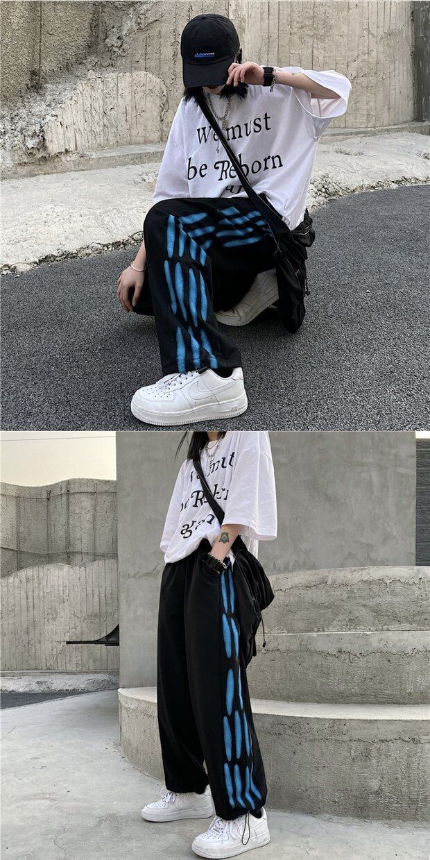 カジュアルパンツ 秋物ウィンタートレンドプリントルーズワイドレッグ ストリート オータム 冬物 ワイドパンツ ボーイズ デーモン4544254361