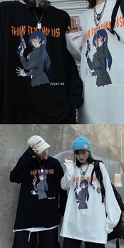 Tシャツシャツ レディーススプリング韓国ファッショントレンドプリントルーズゆったり ロング 春物 スタイル 長袖 デーモン79767507398
