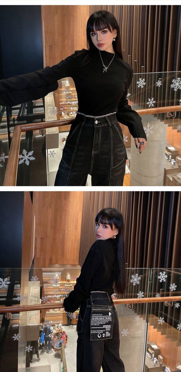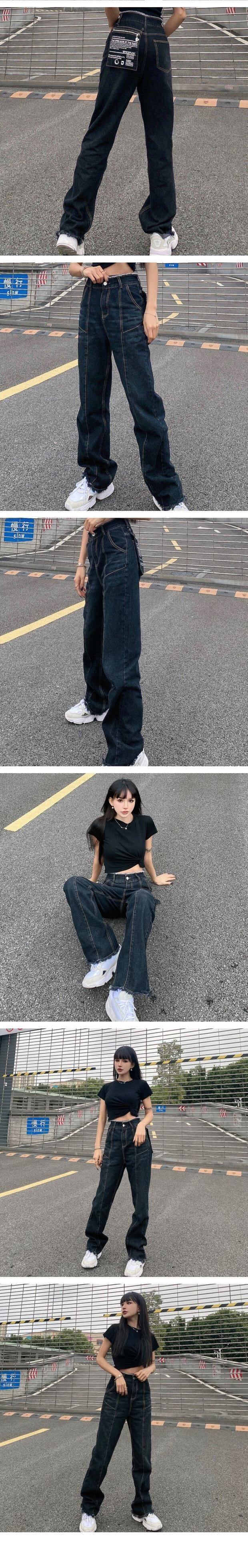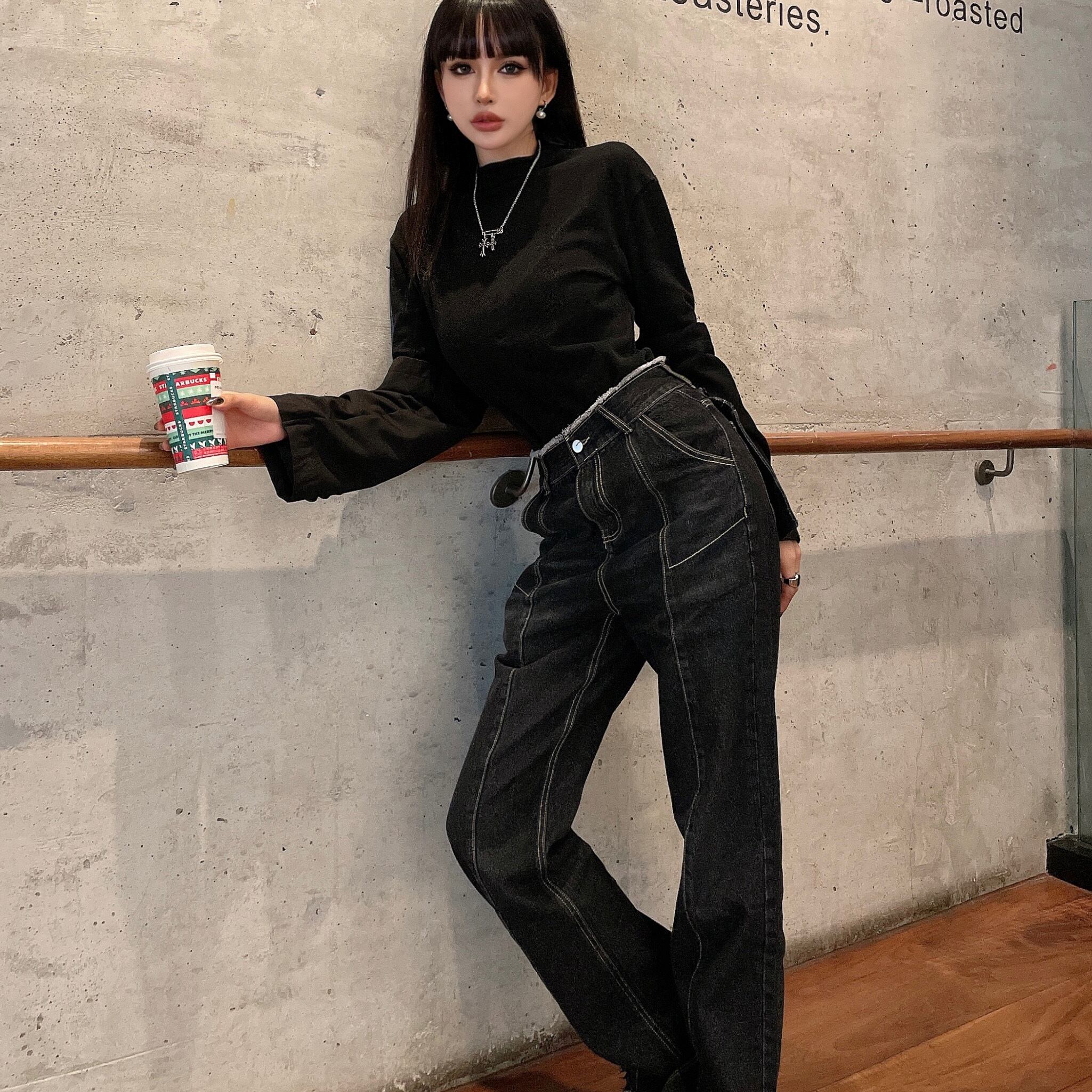 ジーンズ レディース秋物ウィンタートレンドハイウェストウェストスリムブラックルーズワイドレッグパンツ ストリート オータム 冬物 ワイドパンツ ボーイズ ウエスト デーモン54703380067