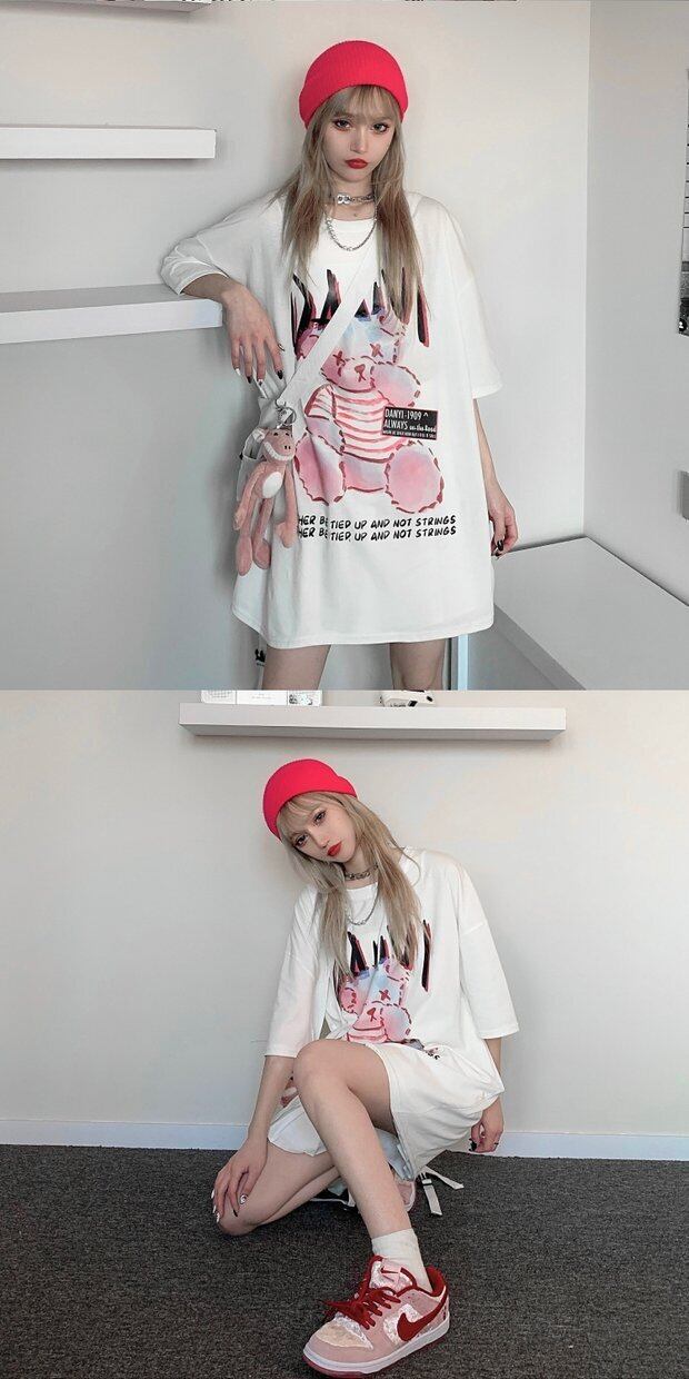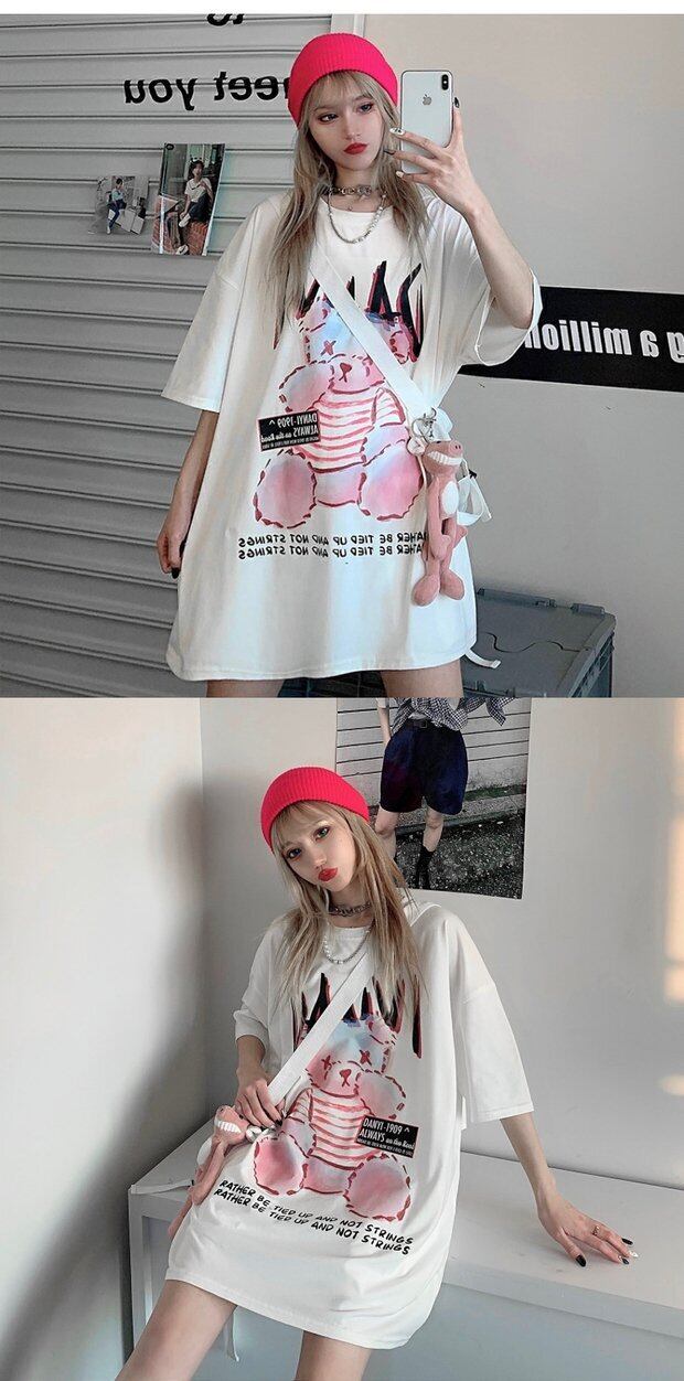 スプリングTシャツトップス レディース韓国ファッショントレンドダークプリント柄ルーズ 春物 スタイル デーモン81159255658