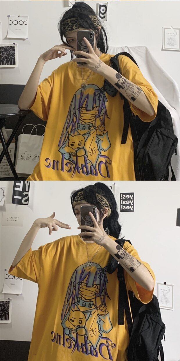 スプリング韓国ファッショントレンドプリントルーズレディースTシャツシャツ ゆったり 春物 ボーイズ スタイル デーモン42539793224