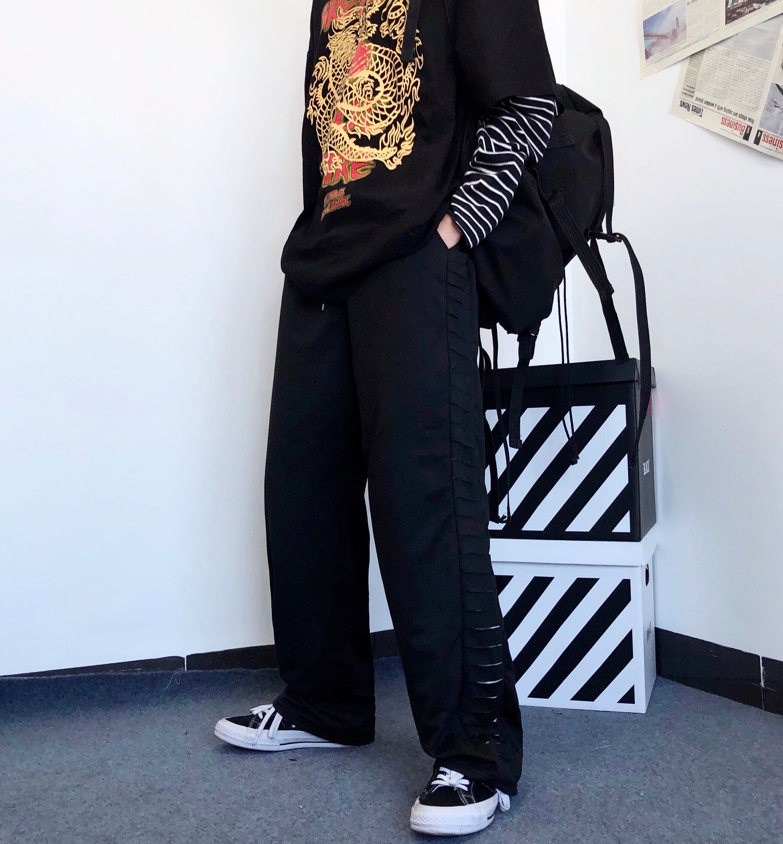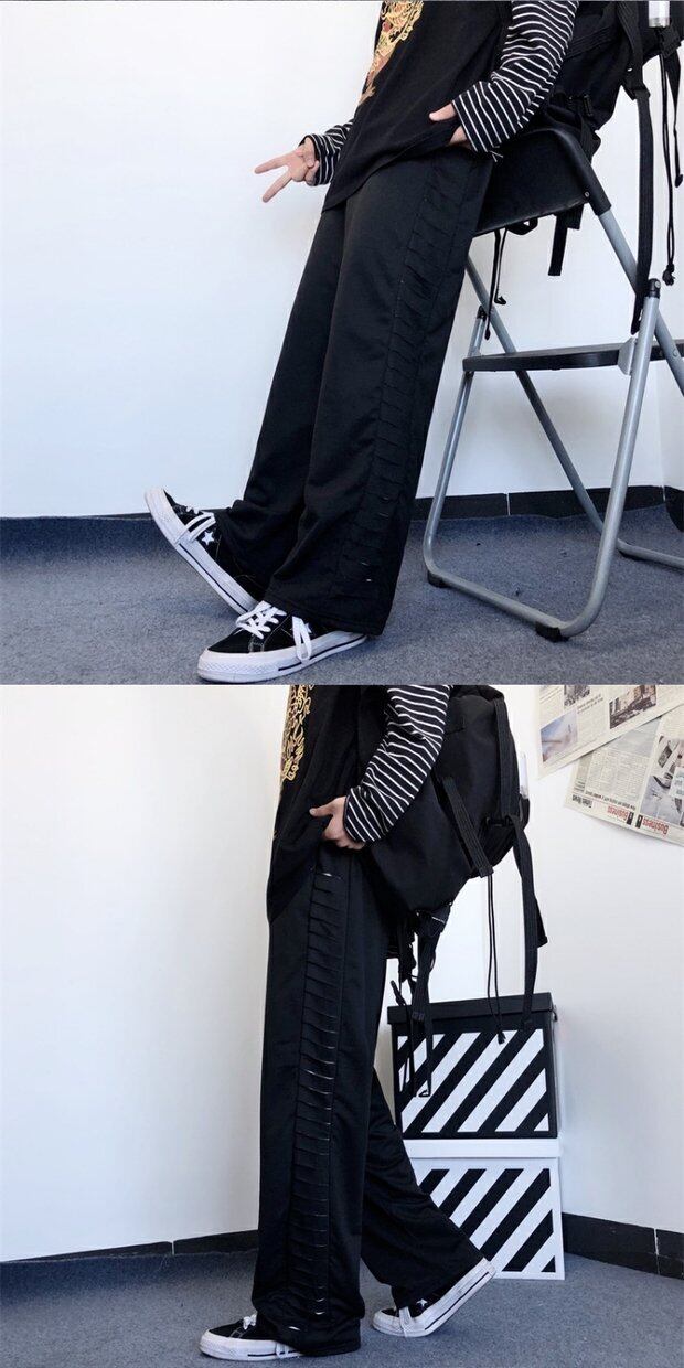 ブラックカジュアルパンツ 秋物ウィンタートレンドワイドレッグルーズ薄手ハイウェストウェスト ストリート オータム 冬物 ワイドパンツ ボーイズ ウエスト デーモン86239189574