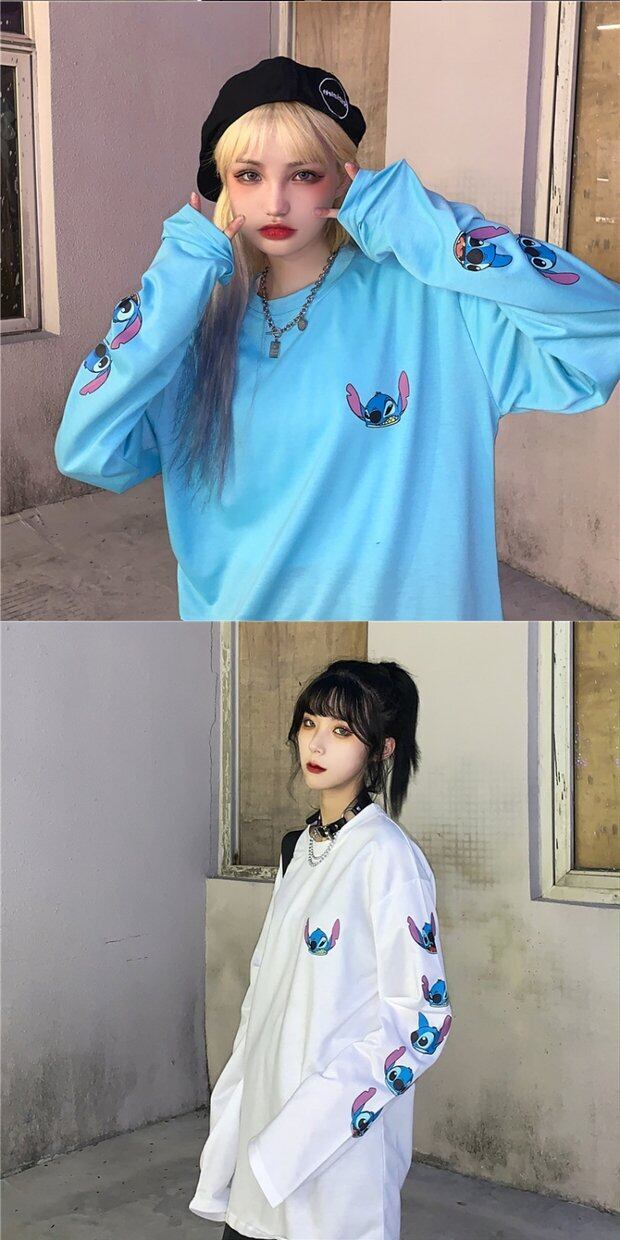 ラウンドネックTシャツシャツ レディーススプリング韓国ファッショントレンドスタイルプリントルーズゆったり ロング 原宿 春物 Oネック 長袖 デーモン63811426967