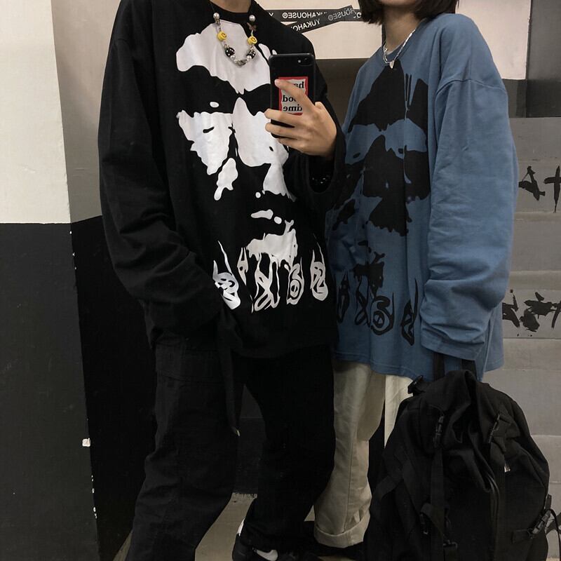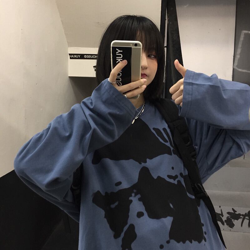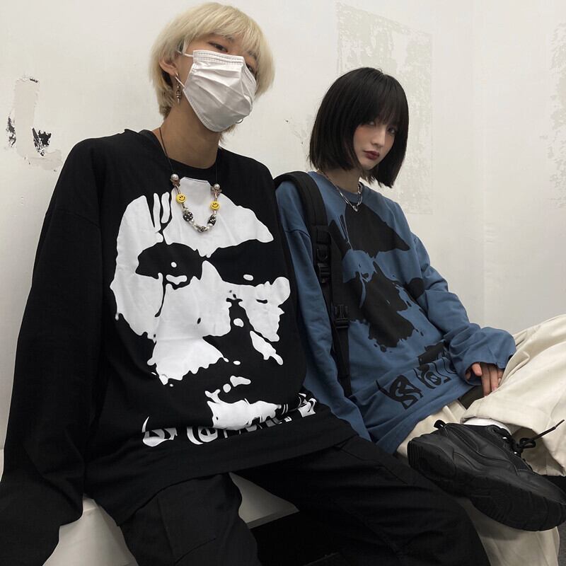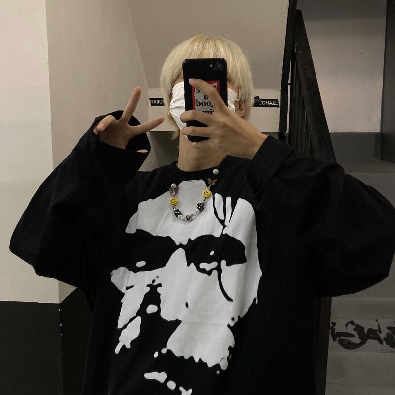 ゆったりシャツ ブラウス スプリング韓国ファッショントレンドスタイルルーズ長袖スリーブTシャツ ロング 原宿 春物 ボーイズ デーモン30808273812