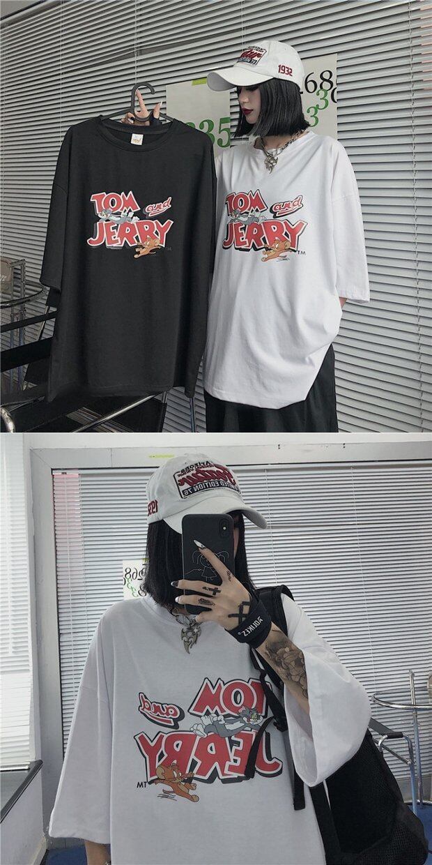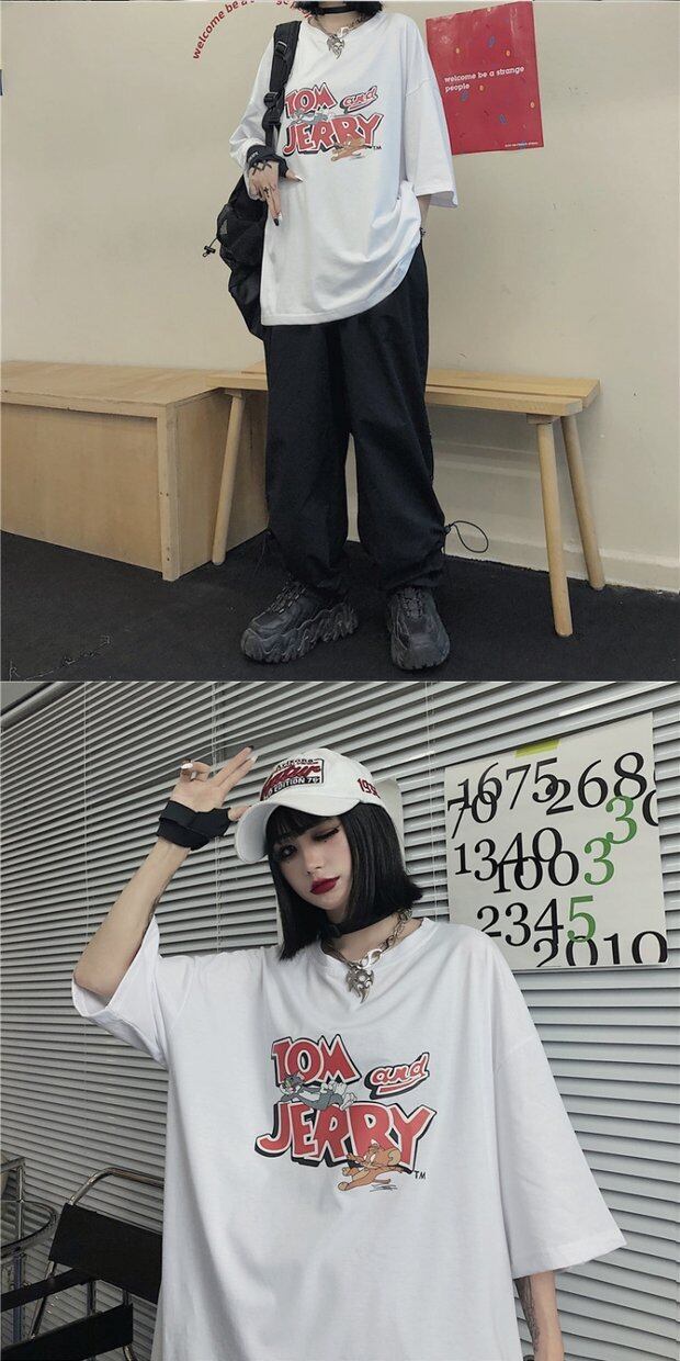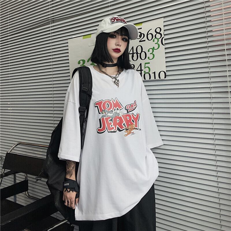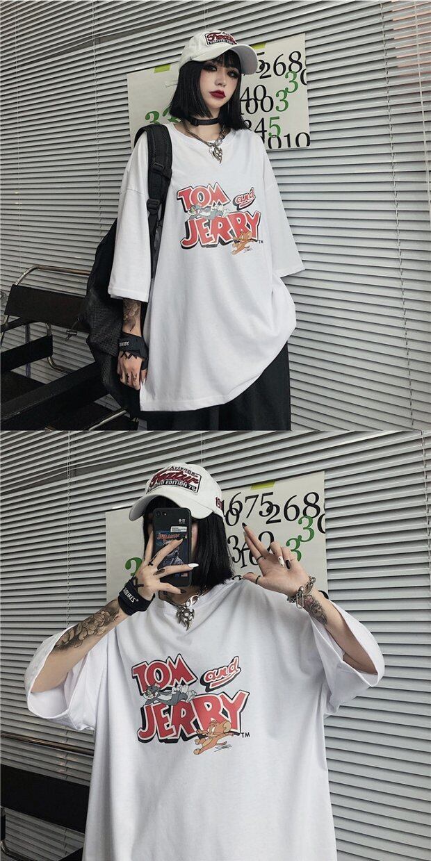 Tシャツレディーススプリング韓国ファッショントレンドプリントルーズホワイトトップス 春物 スタイル デーモン31865541519