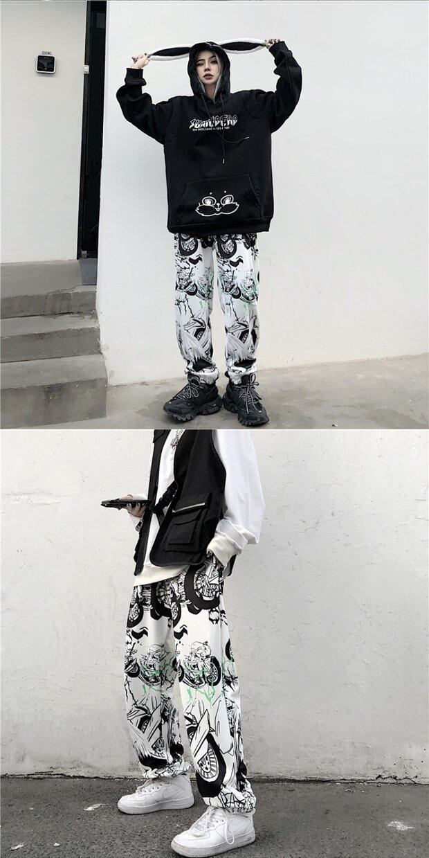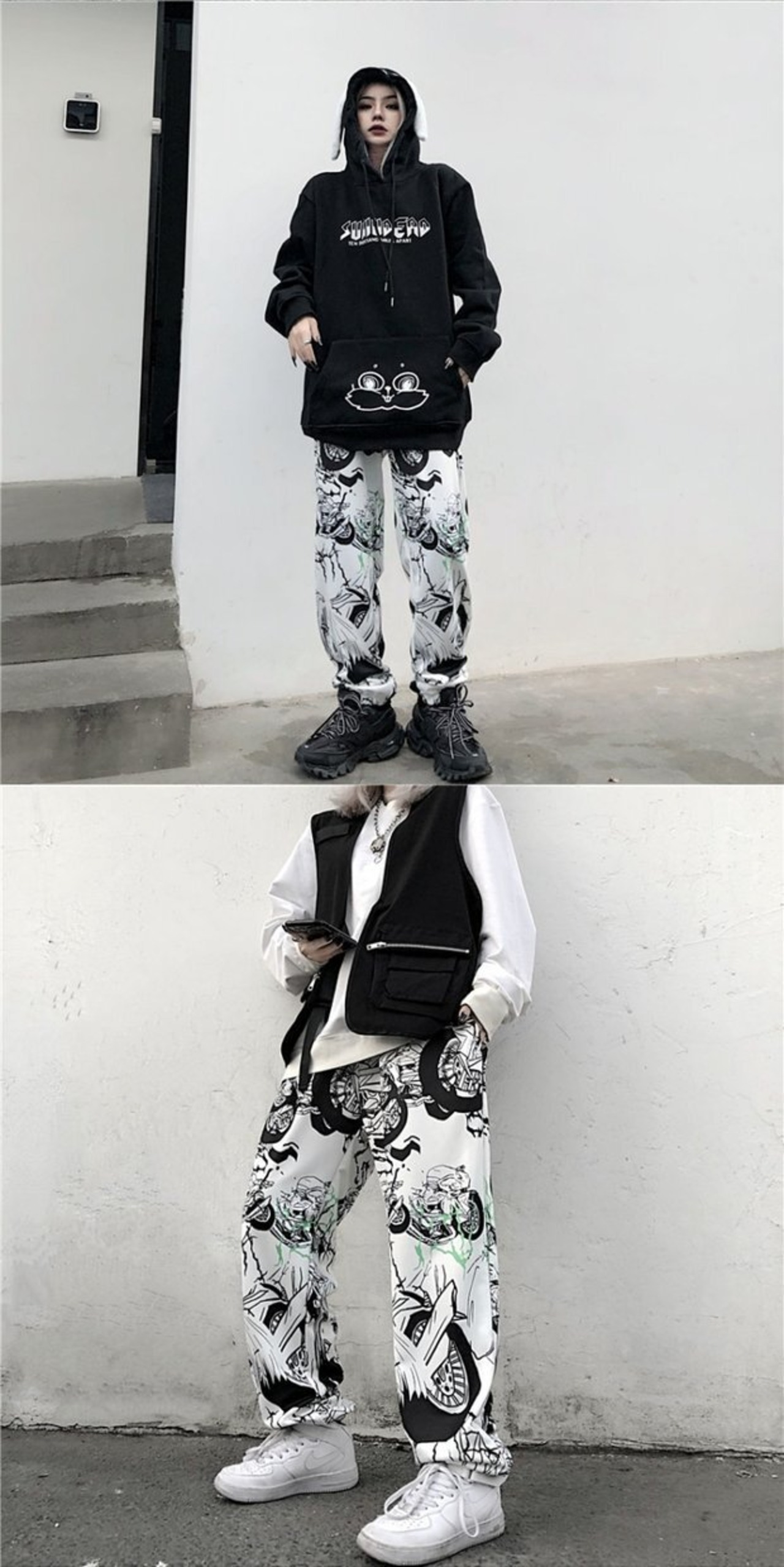 レディース秋物ウィンタートレンドプリント柄パンツ ルーズカジュアル オータム 冬物 ボーイズ デーモン69258239872