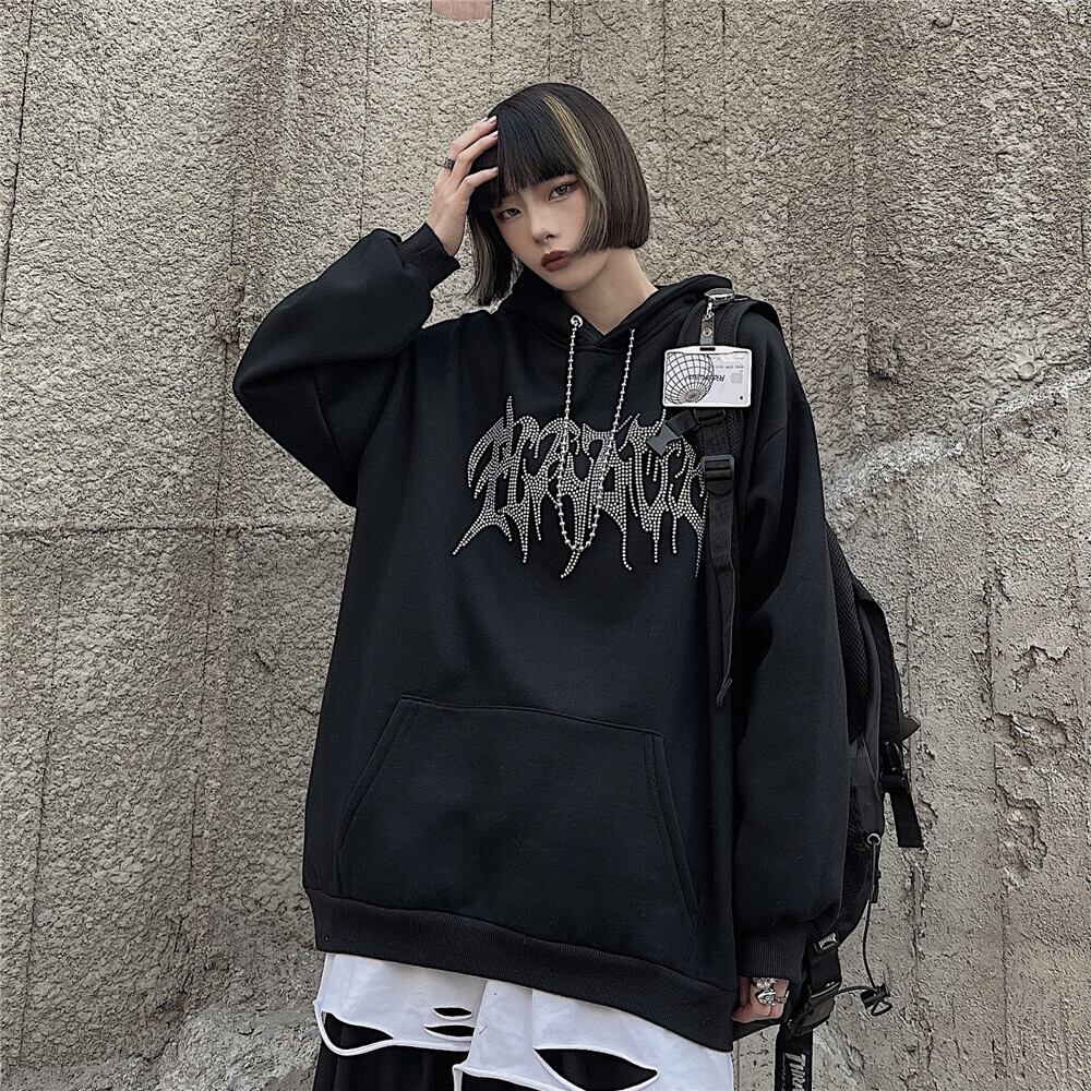 スタイルセーター レディーススプリング韓国ファッショントレンド厚みフードルーズチェーン コート 原宿 春物 デーモン2996808678