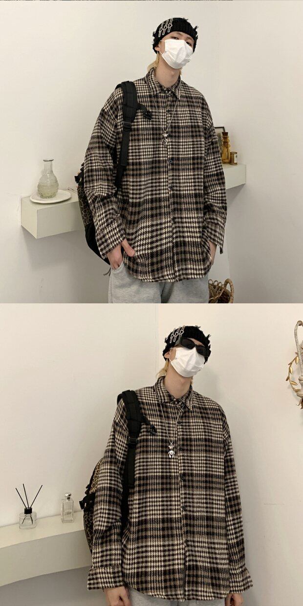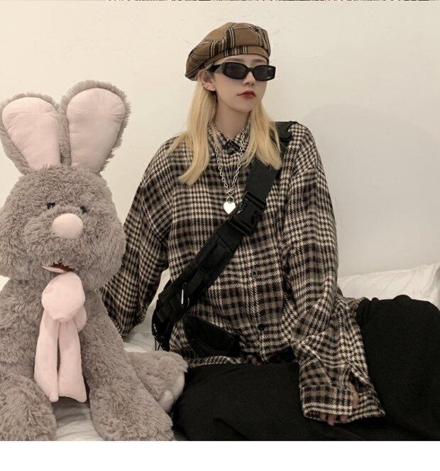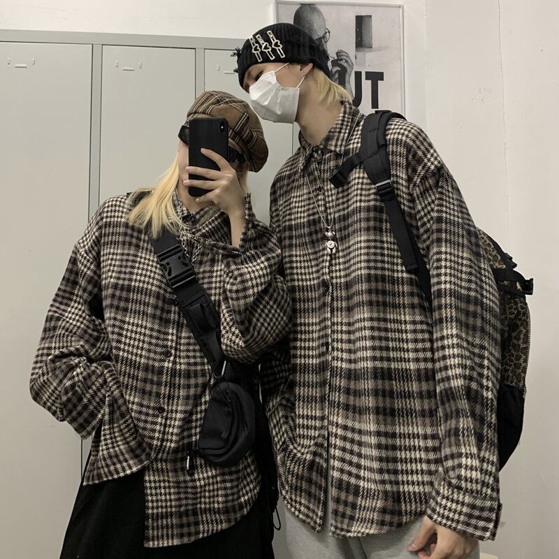シャツ レディース秋物ウィンター韓国ファッションスタンダード格子柄ジャケット ロング レトロ オータム 冬物 ボーイズ 長袖 デーモン21835435402
