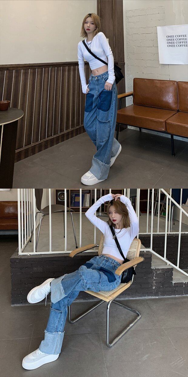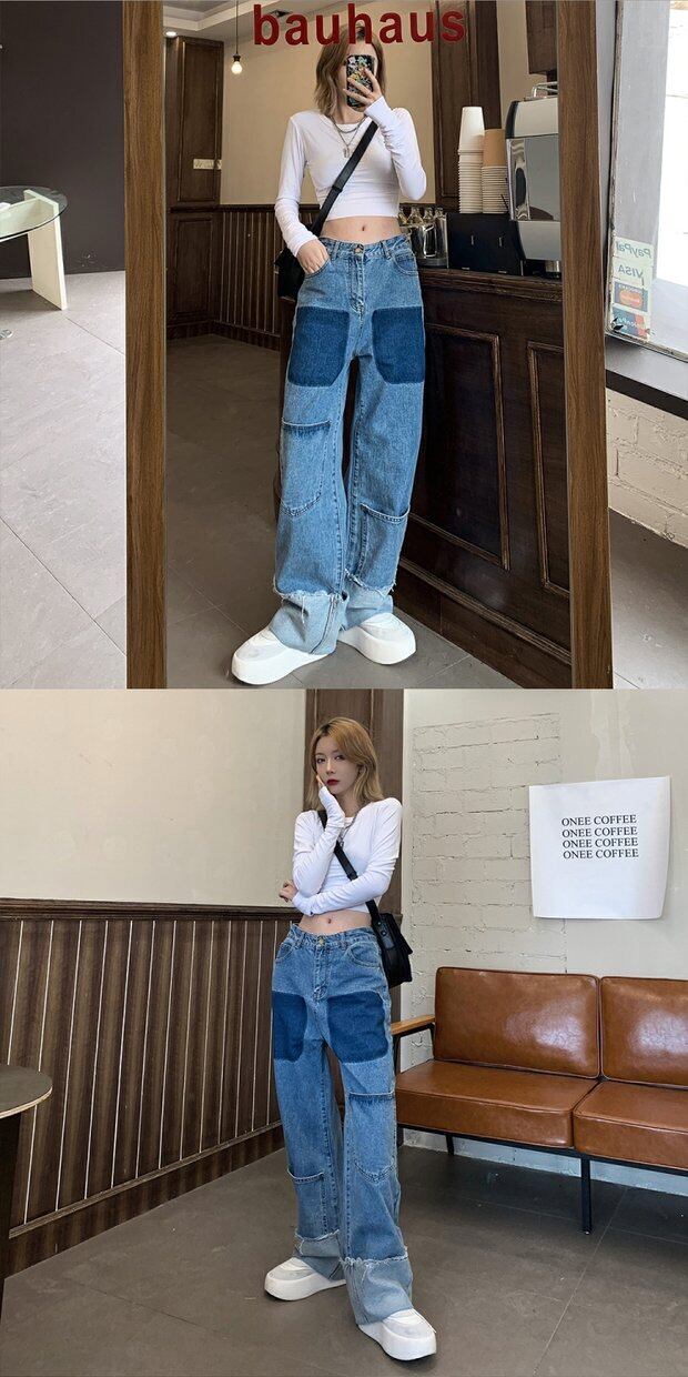 パンツ 秋物ウィンタートレンドカラージーンズ ルーズハイウェストウェストカジュアルワイドレッグ オータム 冬物 ワイドパンツ ボーイズ ウエスト デーモン8131528935